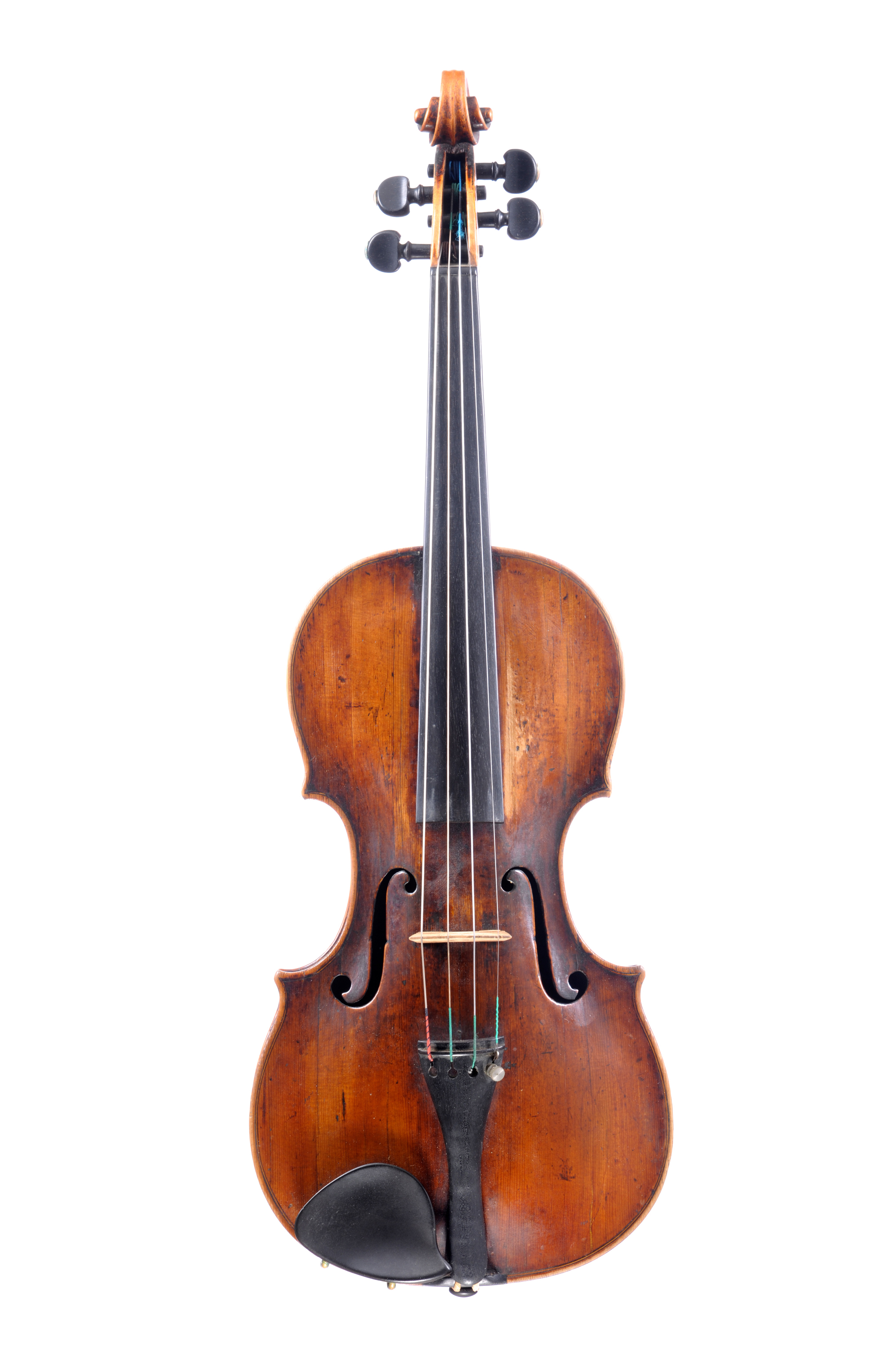 Dont il porte l'étiquette. Ecole de Widhalm. Fond d'une pièce, vernis brun sur fond doré. En bon état de restauration. Diverses cassures restaurées à la table. On y joint la facture d'achat datant du 20 juillet 1966 auprès du luthier B. Vincent Genod.