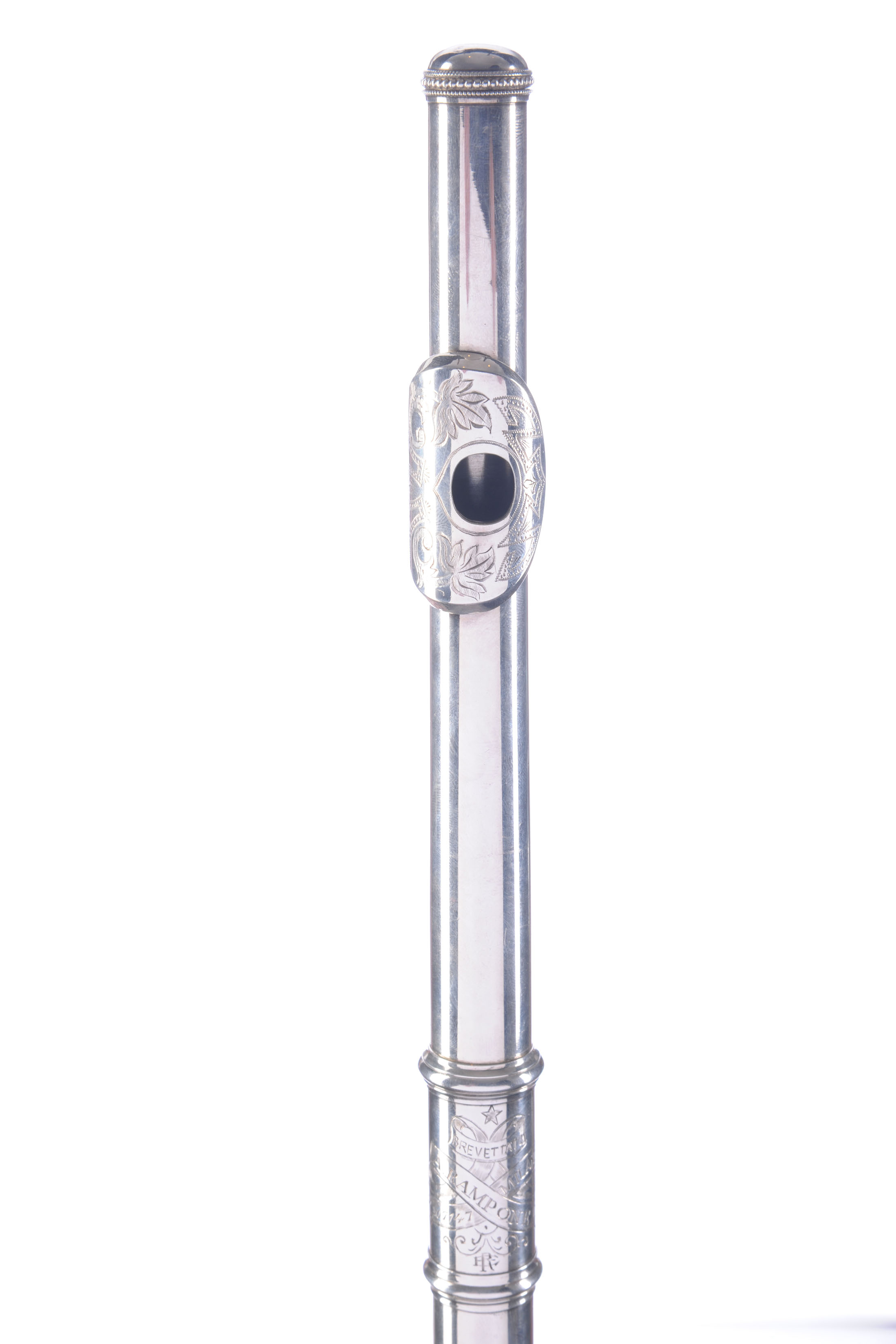 "Agostino Rampone", gravée "Brevettato, A.Rampone, MILANO. N°07147". Avec sa boite d'origine. Plateau plein en ligne. Tête et mécanisme en maillechort argenté, ressors en acier. Corps en argent. Menchon à l'ancienne. Tampons à revoir.