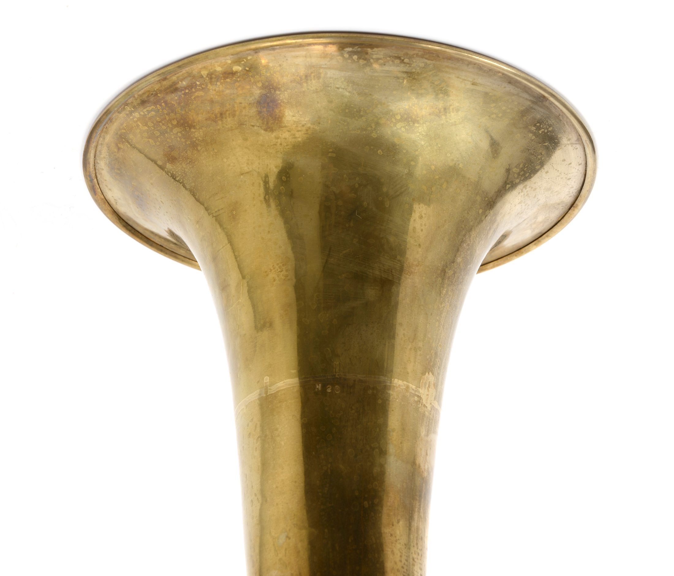 Fait vers 1900, en laiton. N°20. 3 palettes. Légèrement bossué et rayé. Bon état de conservation. Sans son embouchure.