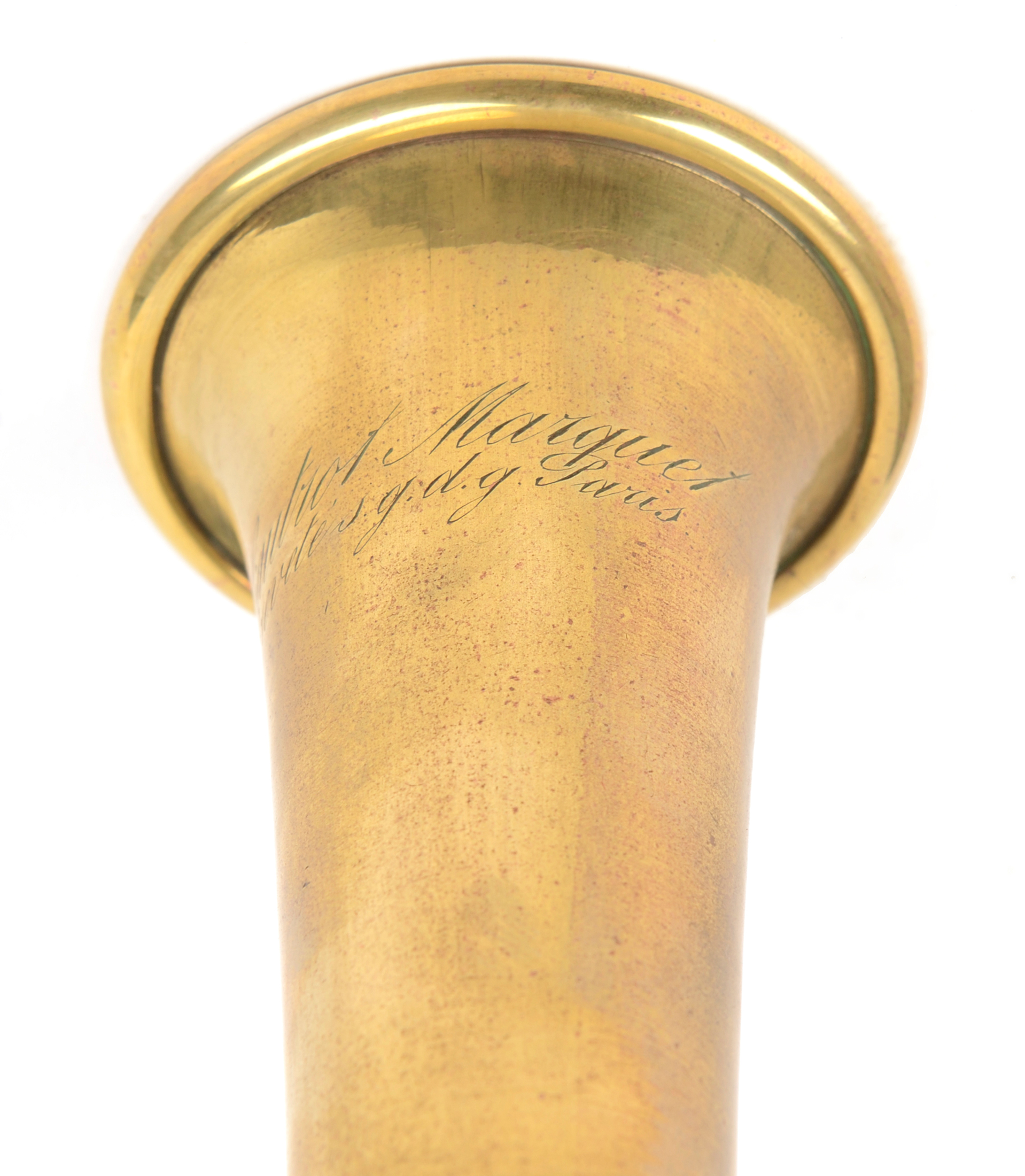 Très rare instrument alto, en mi bémol. Fait en deuxième partie du XIXeme. Retamponné et légèrement rayé, bossué. En Parfait état de conservation.