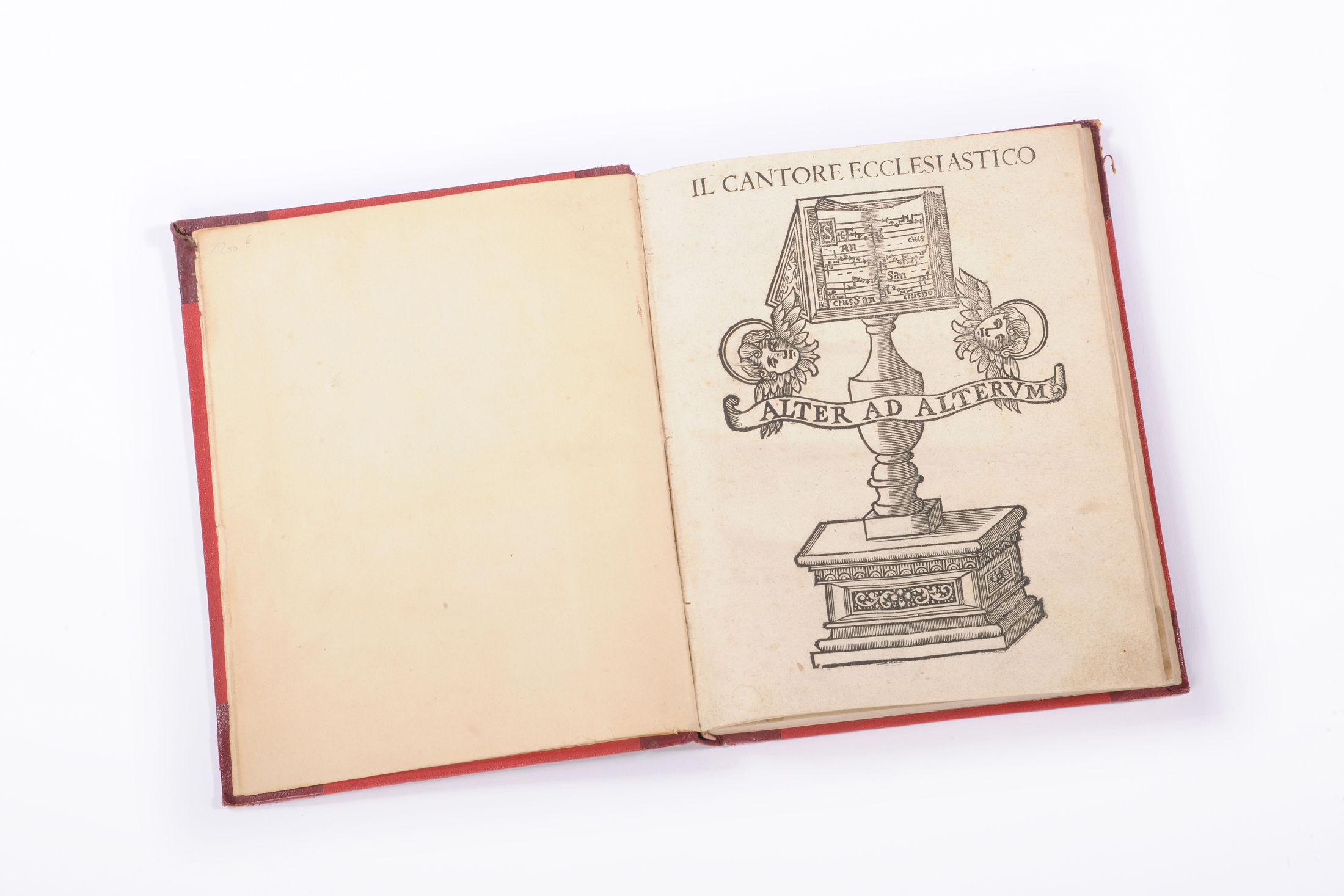 Édition originale de cet important traité italien de chant ecclésiastique édité à Padoue au tournant du XVIIème siècle. Nombreux exemples musicaux dans le texte, les deux planches gravées sont particulièrement marquantes : en frontispice le pupitre du «Chef de Chant », en fin de volume la fameuse Main musicale guidonnienne. L’exemplaire, au papier très bien conservé, a été relié de nouveau au XIXème siècle, et est par conséquent parfois court de marge supérieure (sans atteinte au texte exceptés les titres courants et la pagination).