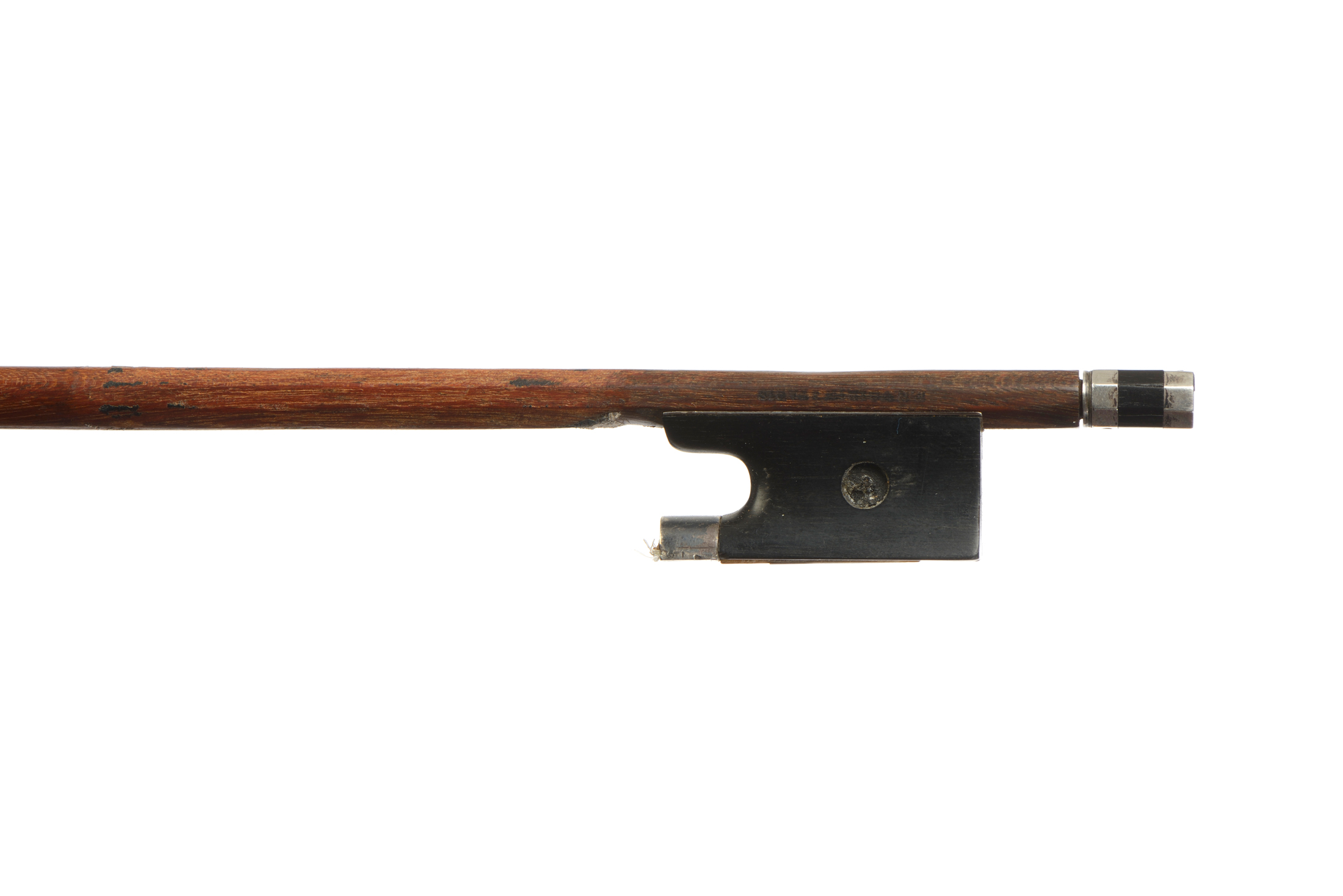 probablement fait pour la veuve de F.N VOIRIN, dont il porte la marque au fer. Baguette en pernambouc. Hausse ébène montée argent. 47,5 g sans sa mèche.