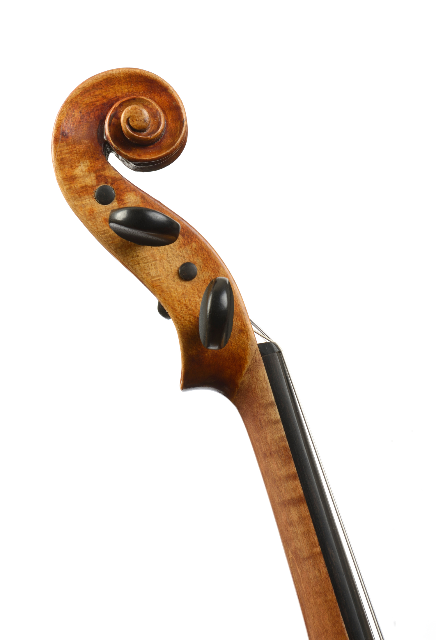 Intéressant violon portant une étiquette de "JOH. Bapt. Schweitzer", 1813. Fond d'une pièce en érable ondé aux ondes légères et horizontales. Eclisses et tête du même bois. Table aux pores serrés au centre s'élargissant sur les bords. Vernis brun orangé sur fond doré.