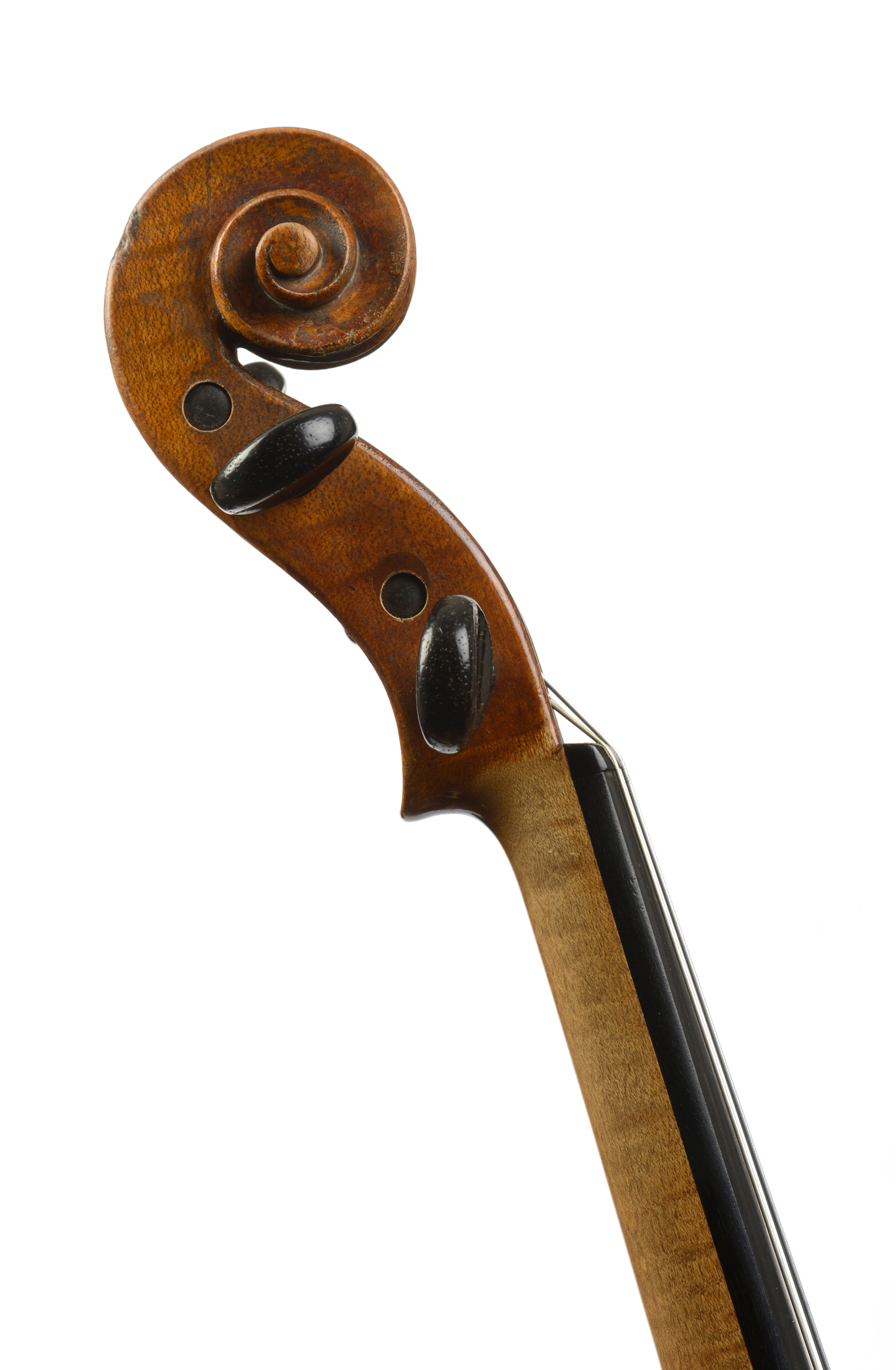 Portant une étiquette apocryphe de Bernardel. Fait à la fin du XIXe. Fond de deux pièces. Vernis brun sur fond doré. Petit accident sur la table sur le flanc du haut droit réparé. Bon état de jeu. 356 mm.