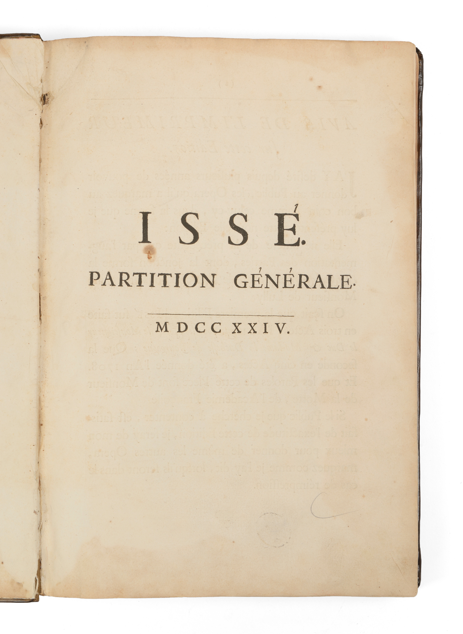 Partition générale. Paris, Jean-Baptiste-Christophe Ballard, 1724, in-folio, pleine peau moderne appliquée sur les cartons d'origine, 8+300 pp.