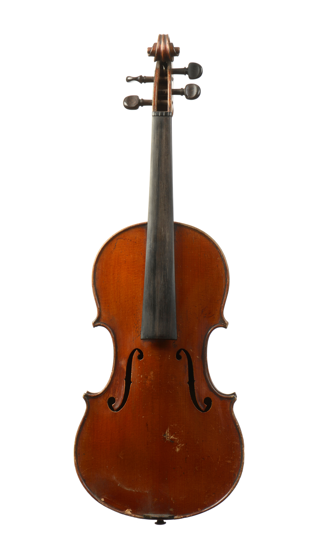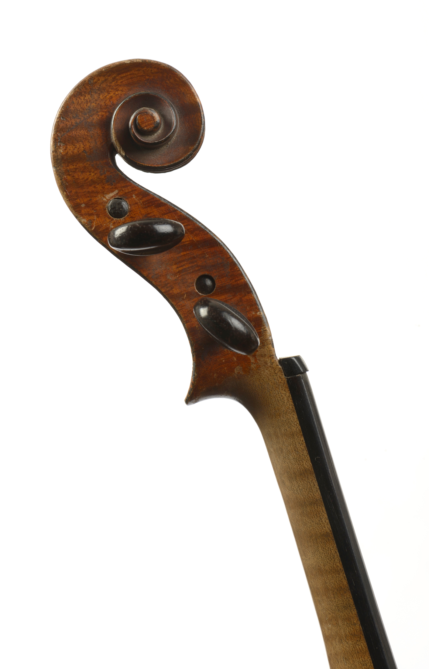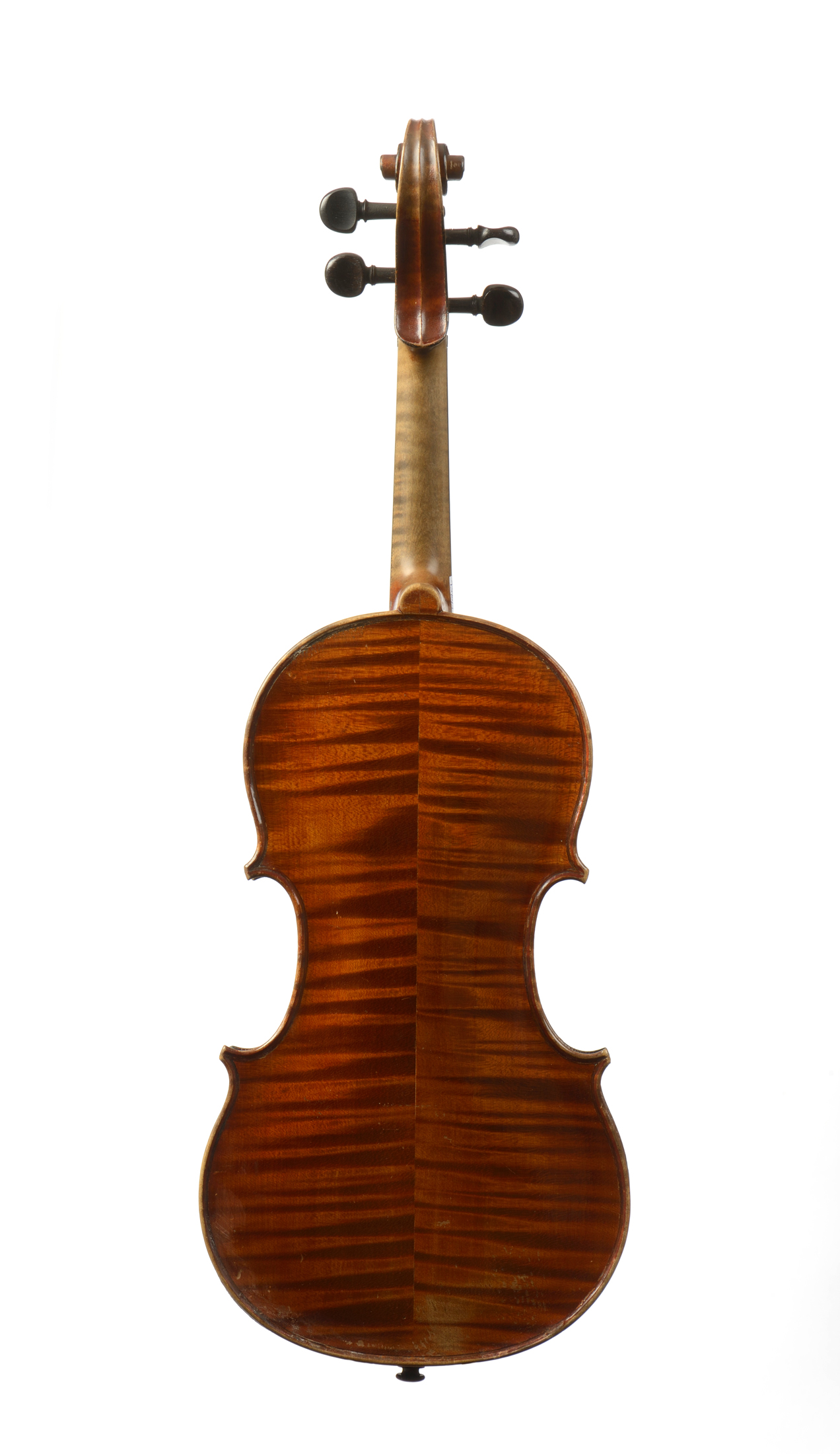 portant l'étiquette de Collin Mézin à Paris et sa signature, au millésime de 1919. Fond de deux pièces. Vernis brun sur fond doré. 359 mm. Avec boite et archet. Reprise de vernis sur la table.