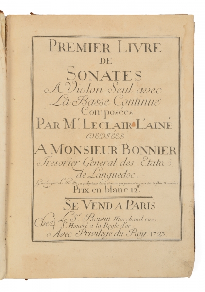 Premier Livre de Sonates à violon seul avec la Basse continue