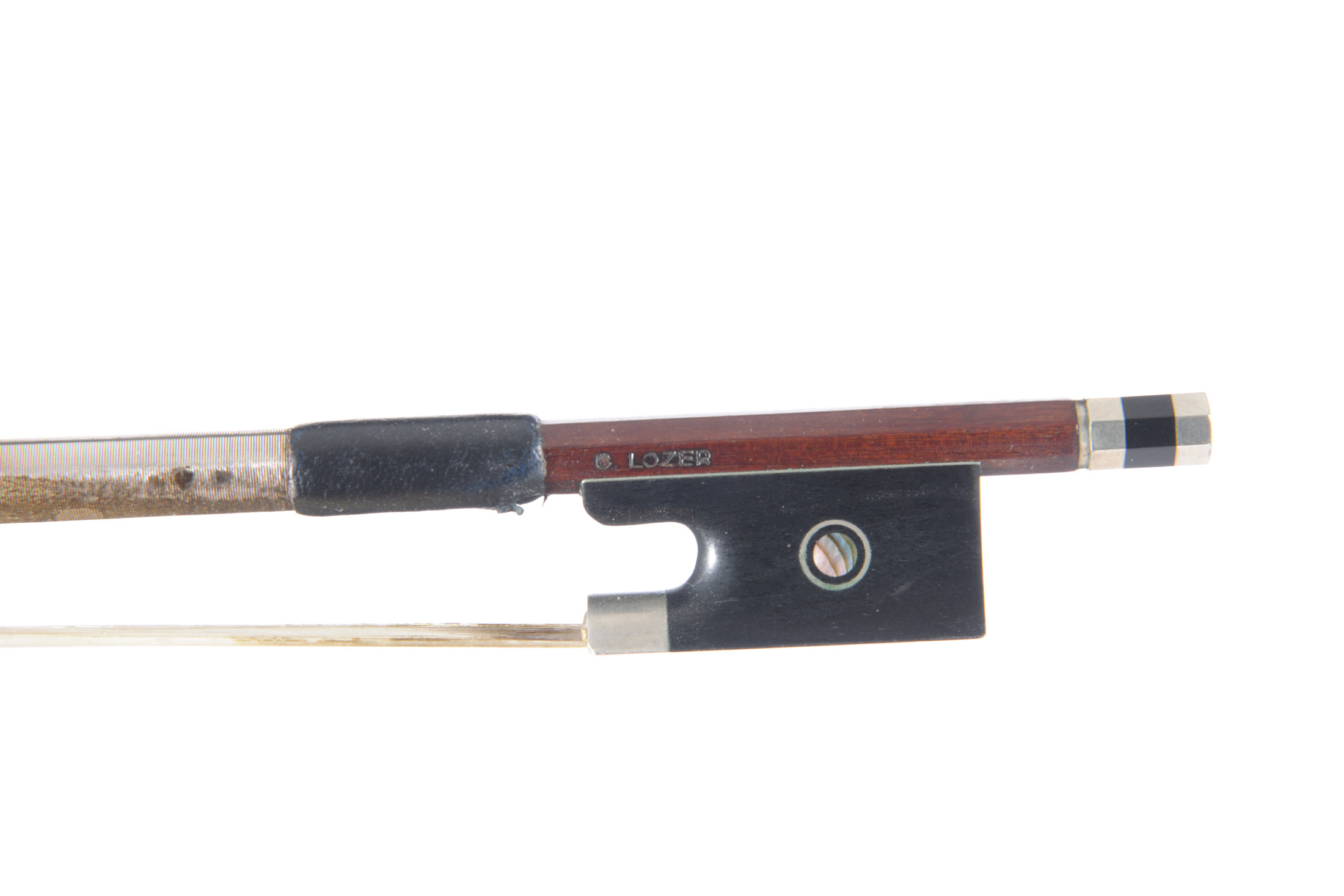 Fait en Allemagne, en bois de pernambouc. Hausse ébène avec grain cerclé , montée maillechort. Marque au fer de G.LOZER. 727 mm. 60,9 g.