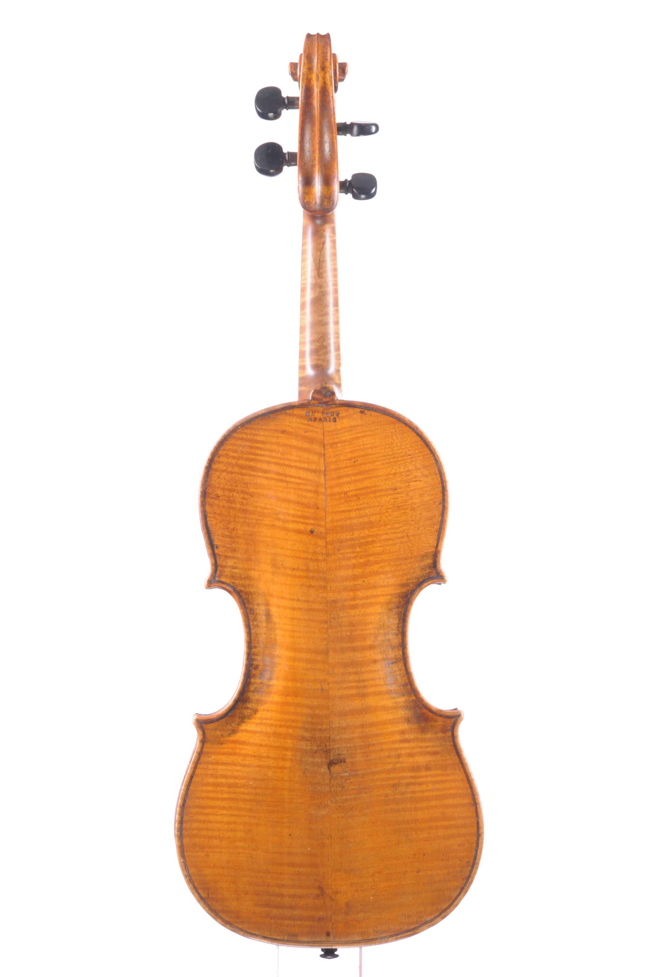 stamped Chappuy à Paris sous le talon du manche. Vernis brun doré. 359 mm. Il porte une étiquette " Réparé par Pierre Ringonbach, luthier à Rennes."