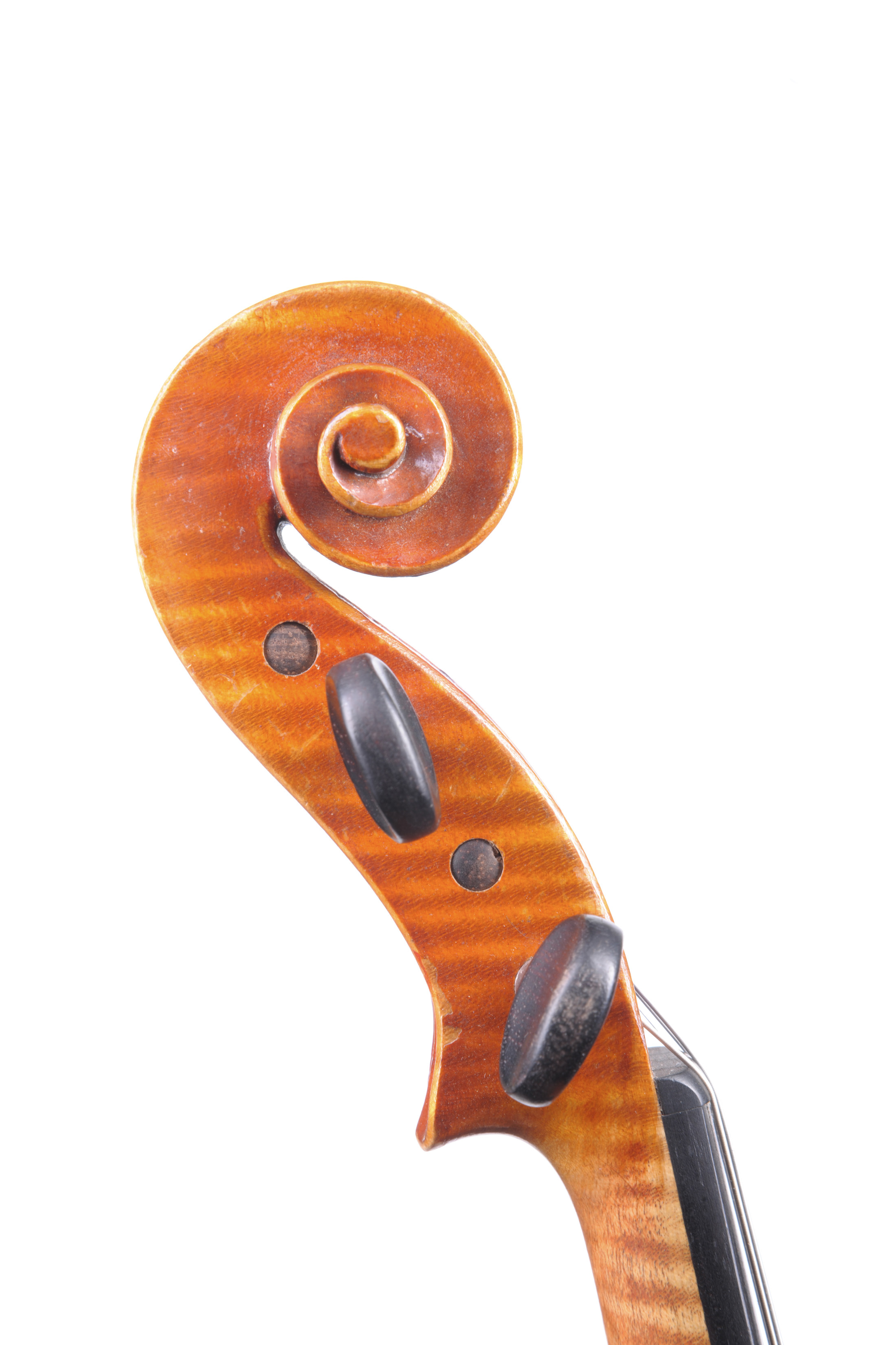 fait à Mirecourt. Il porte une étiquette de Fournier de 1924. Fond d'une pièce aux légères ondes horizontales. Vernis orangé sur fond doré. Bon état de conservation. Avec son étui. 359 mm.