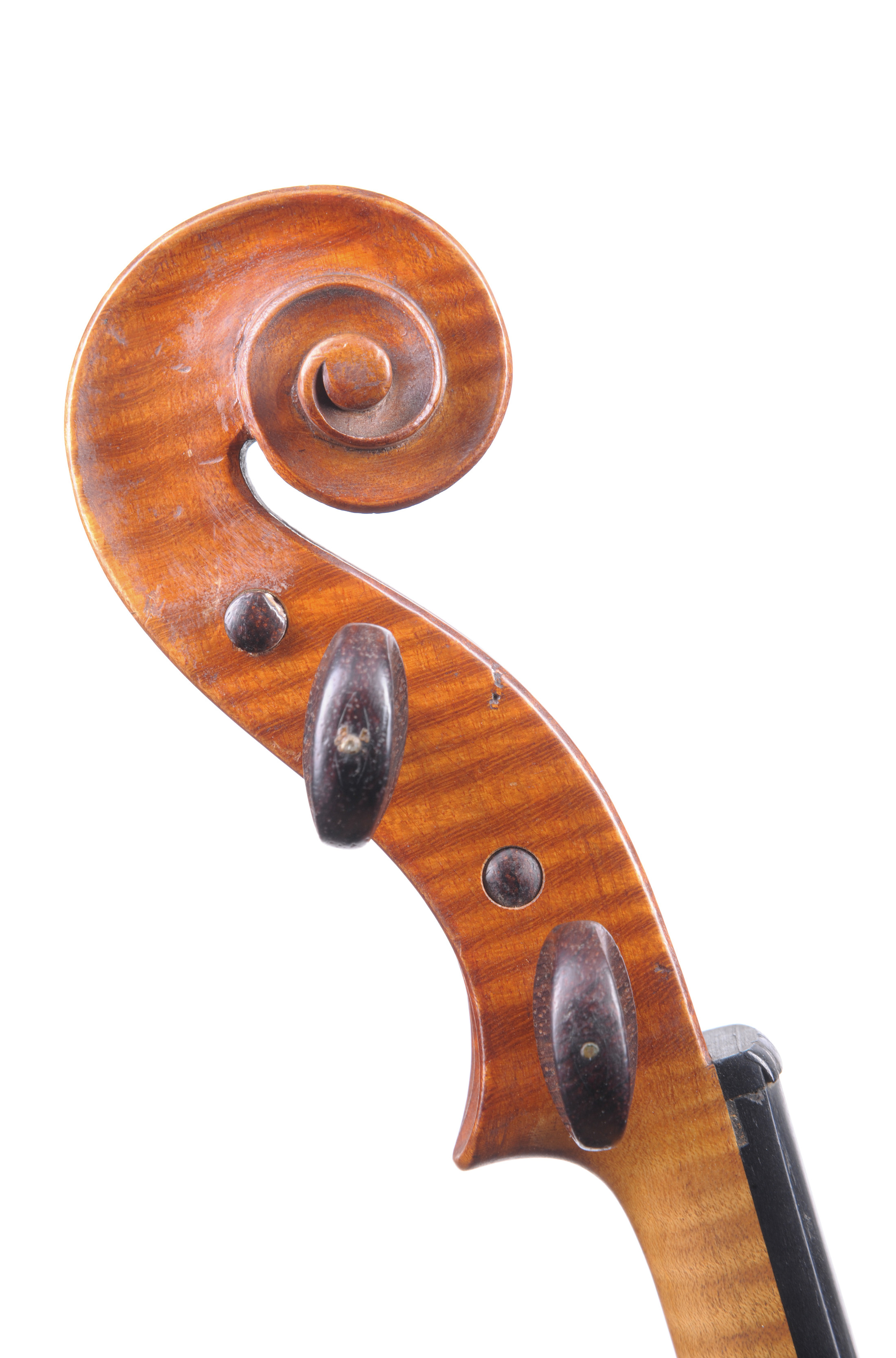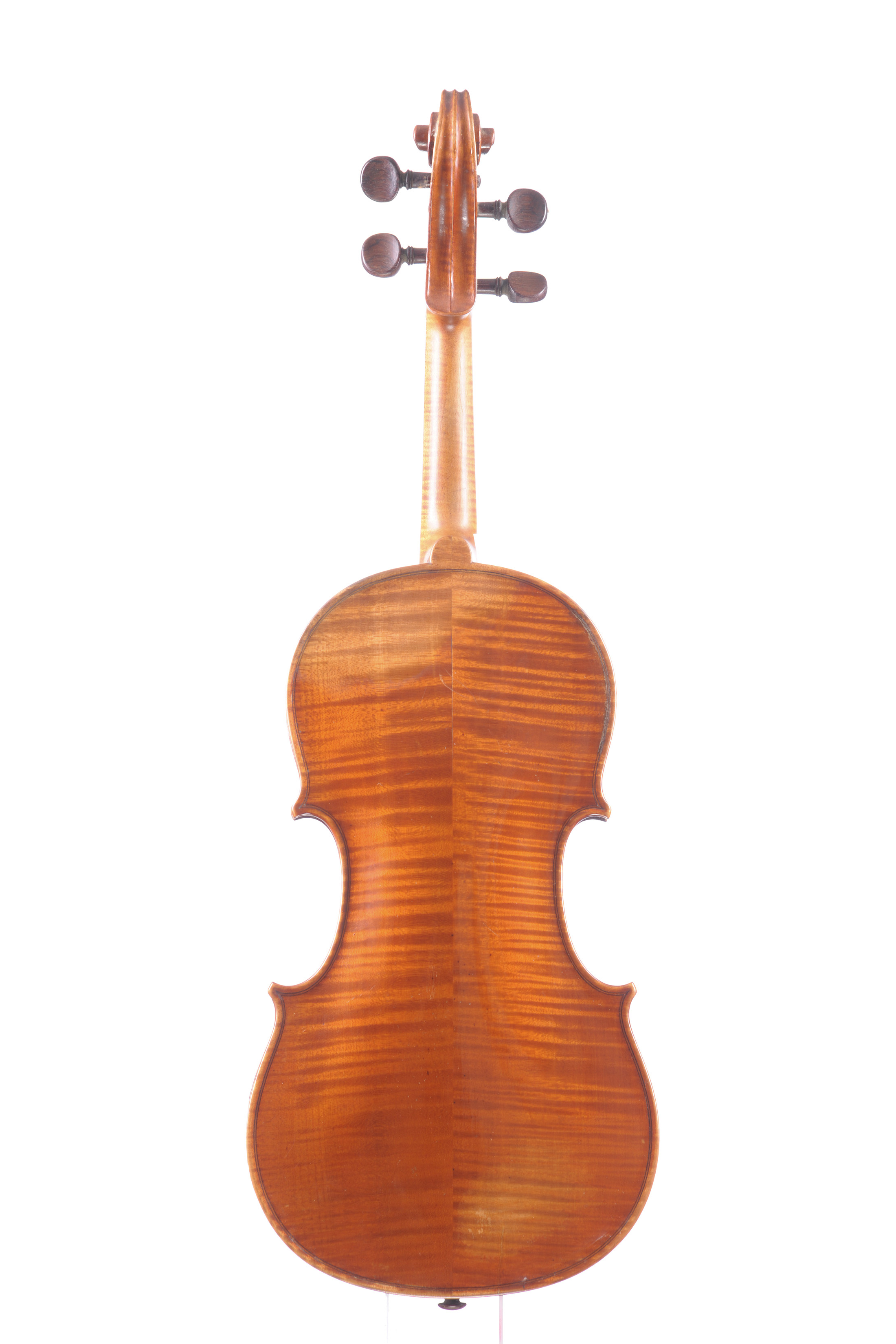 fait dans les ateliers de Jérome Thibouville Lamy, en modèle de Guarneri. Il porte une étiquette de Paul Beuscher au millésime de 1935. Cassure de table restaurée. Bon état général. 355 mm.