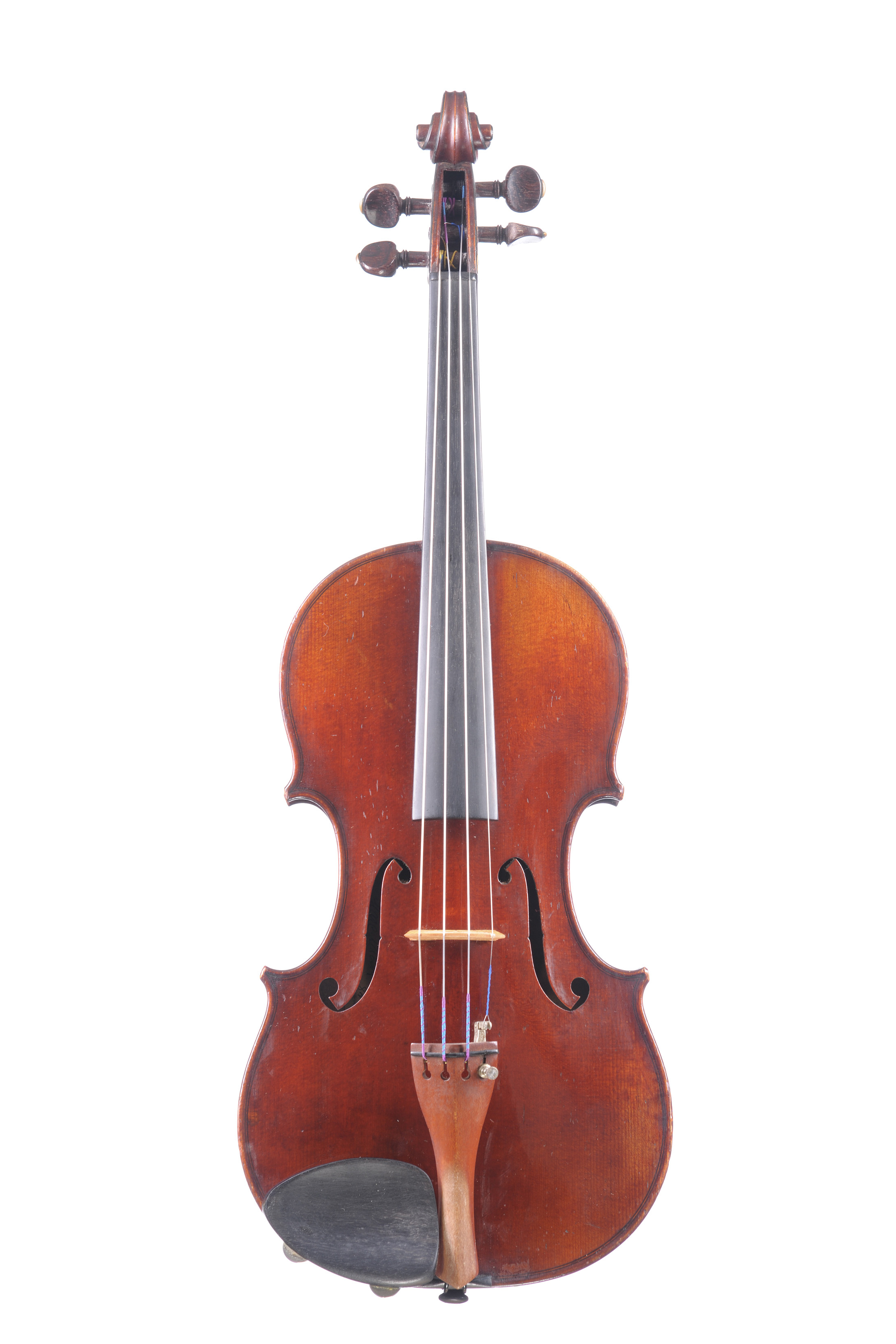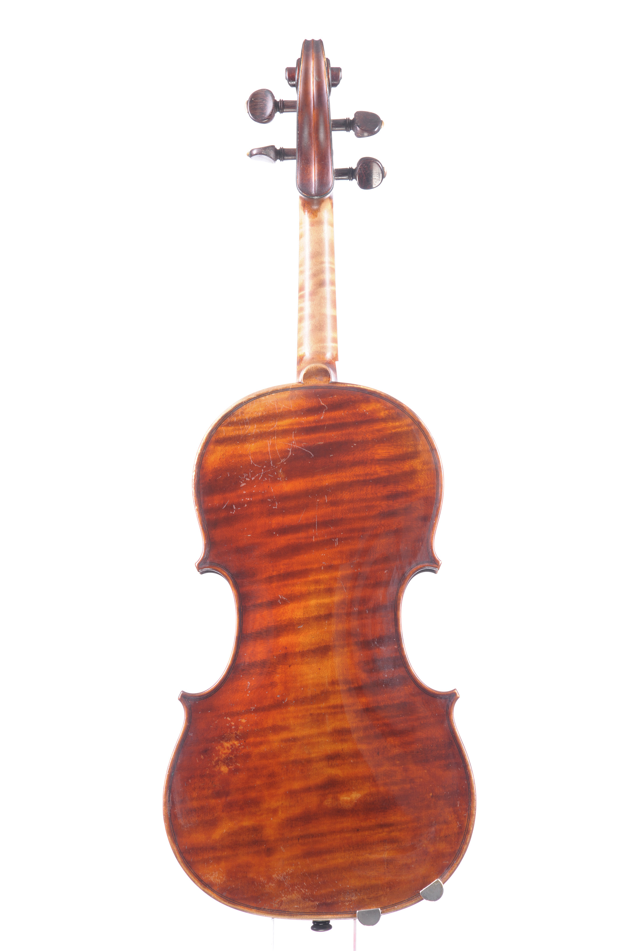 "D'après le Guarnerius, le Paganini" signé et daté 1947, de Marc Laberte. Numéroté 843. "Grand prix Paris 1931, exposition internationale Bruxelles 1935, New York 1939." Fond d'une pièce. Vernis brun rouge sur fond doré. 360 mm.