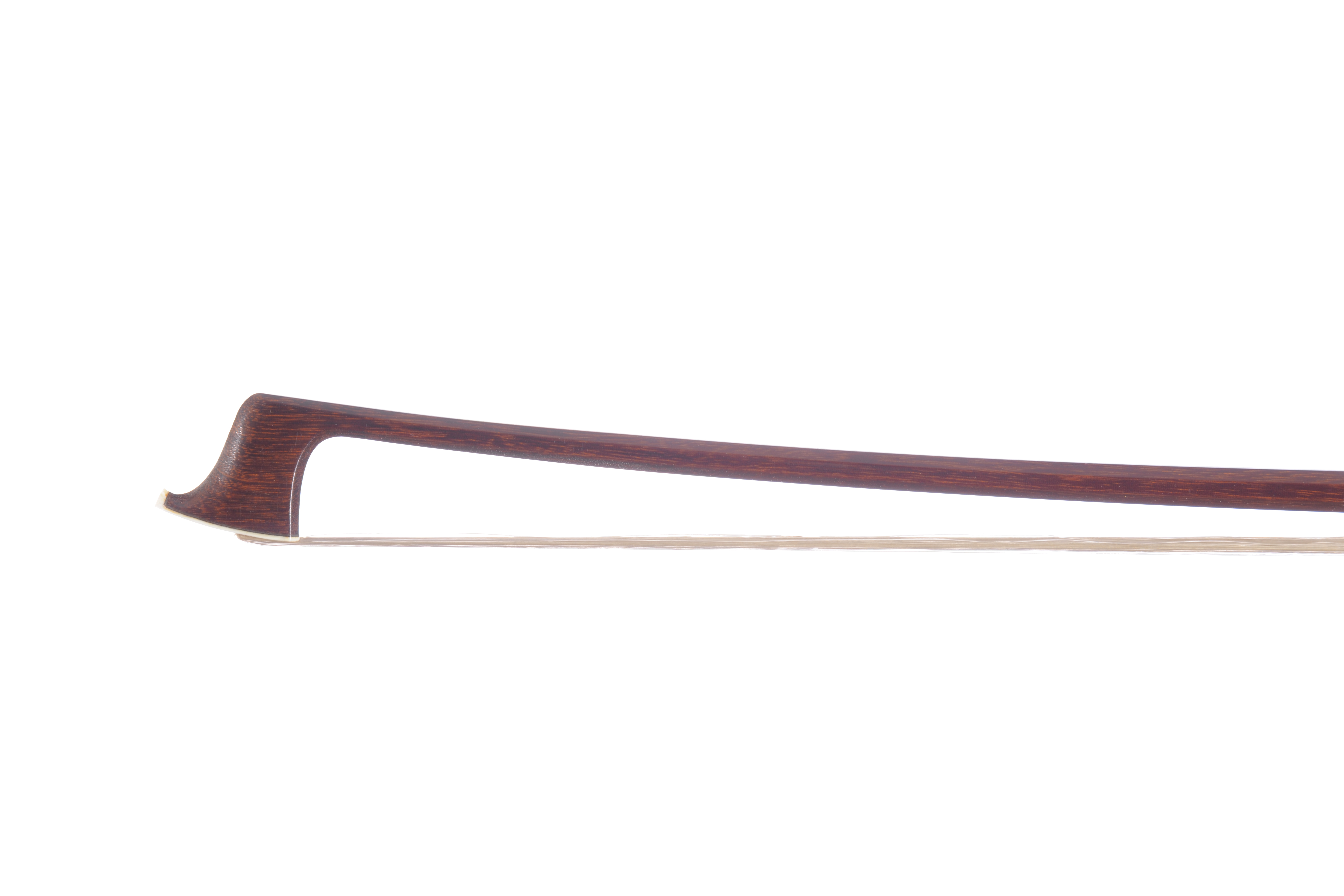 Archet d'alto, Alfred Knoll. Baguette en pernambouc octogonale. Hausse ébène à talon rond avec grain cerclé, l'ensemble monté argent. bouton de virole argent, ébène. 71, 2 g. 728 mm.