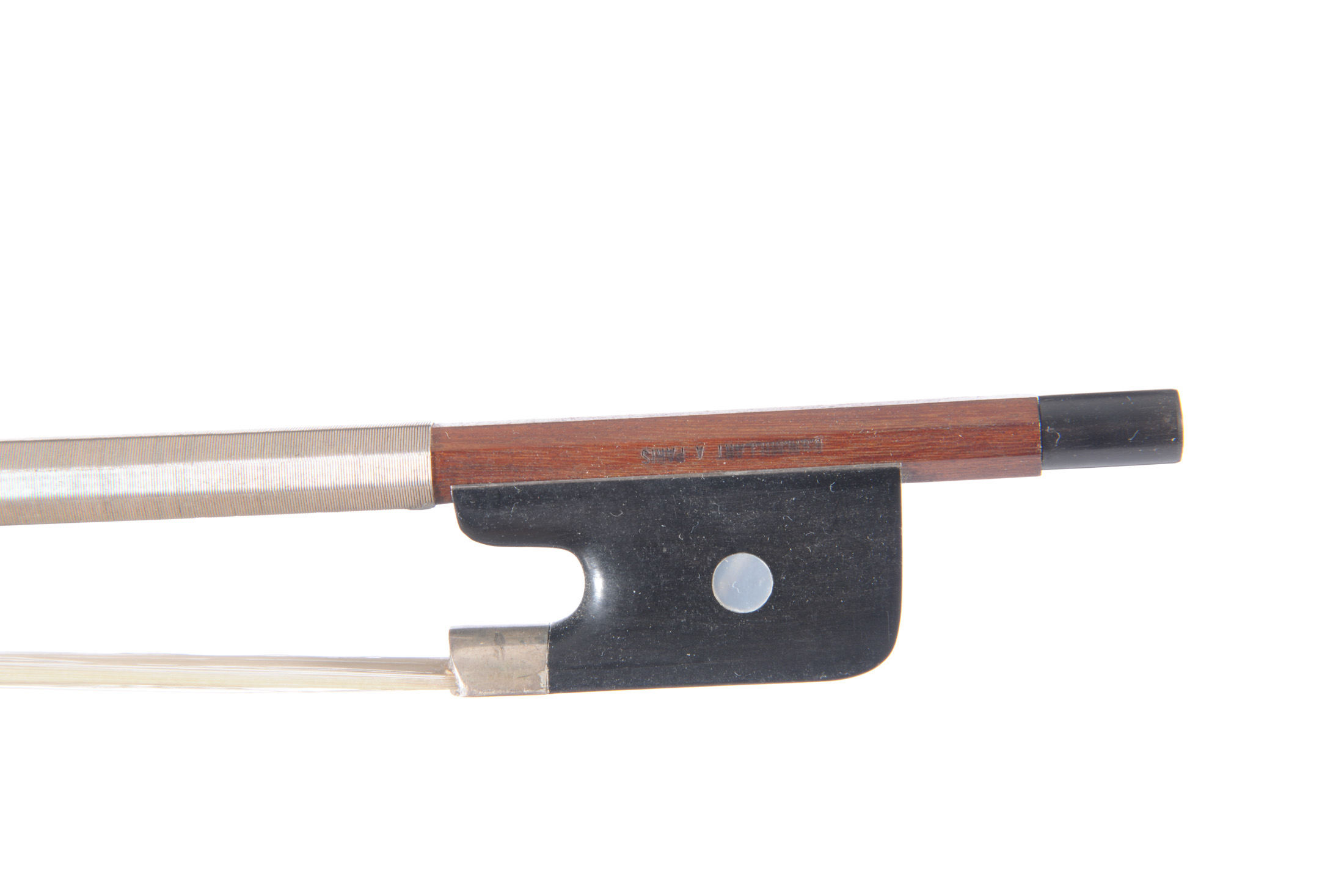 fait pour "R.M Millant à Paris". Baguette ronde en pernambouc, hausse ébène montée argent. Bouton manquant. 692 mm.