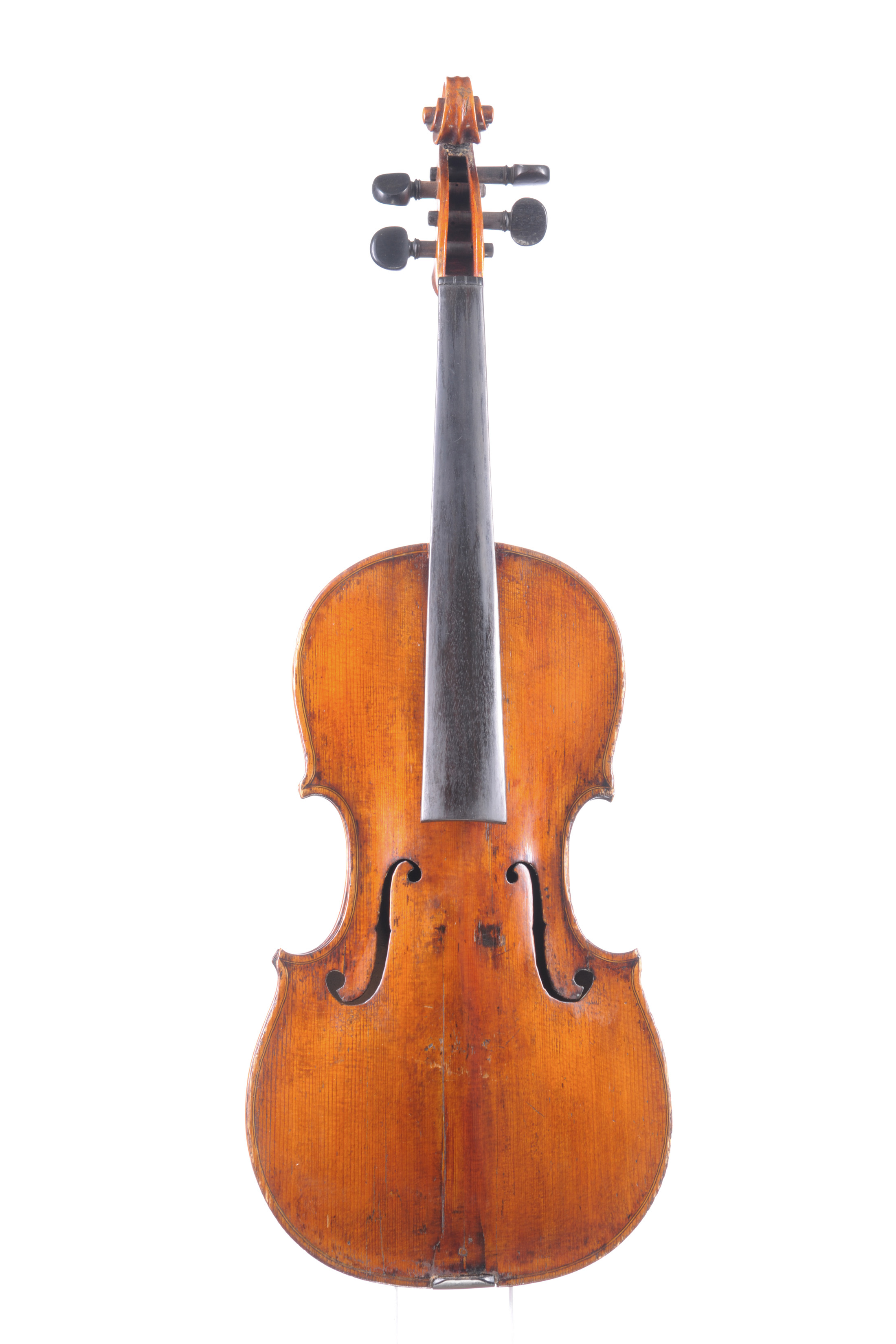 Intéressant violon fait en seconde partie du XIXe. Cassures de table et d'éclisse réparée. Reprise de vernis sur la table.