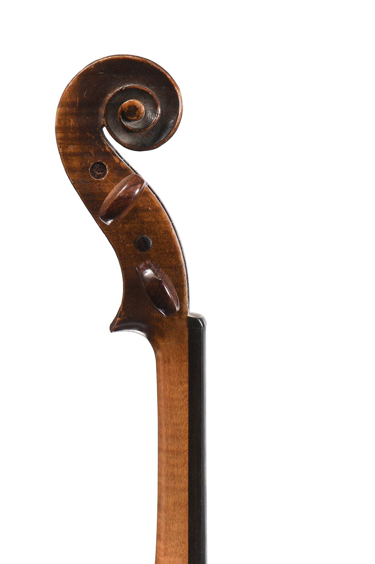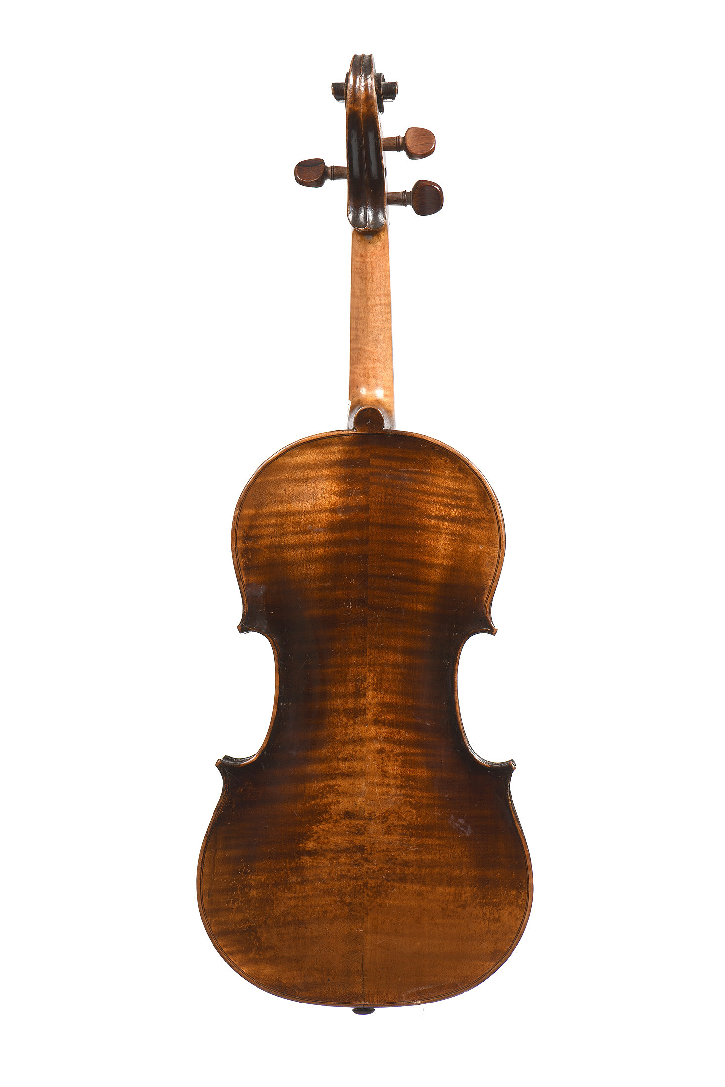 portant une étiquette "modèle d'après Jacobus Stainer...1659". Fond de deux pièces. Eclisses et tête du même bois. Vernis brun foncé sur fond doré. Diverses usures.