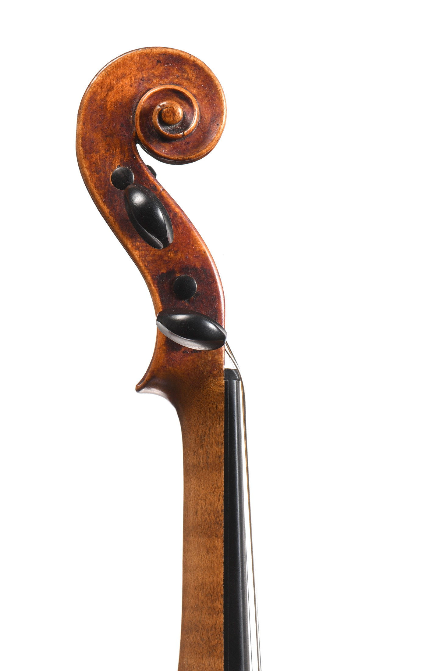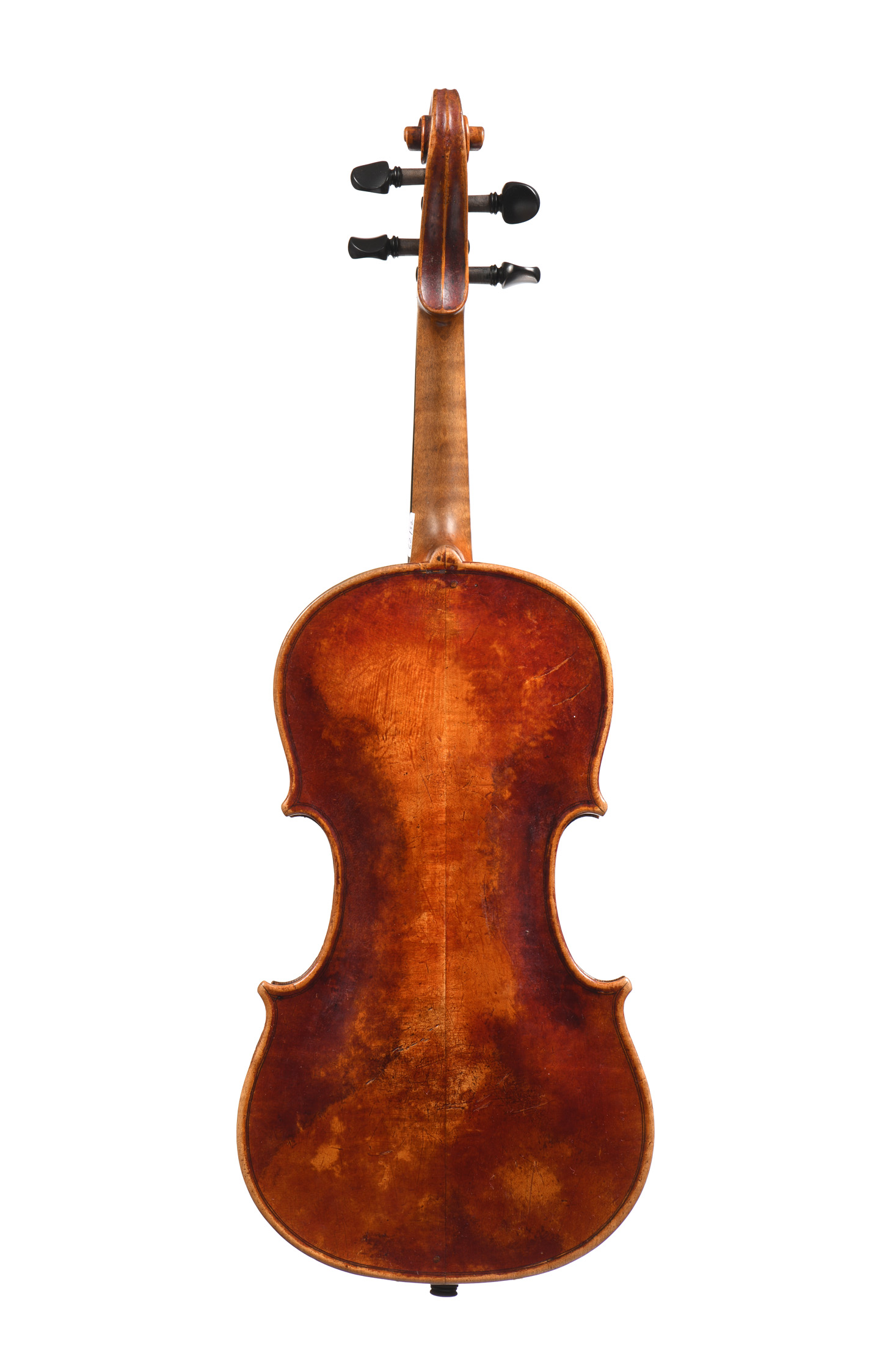 dont il porte une étiquette "FENDT" datée de 1797. Fond de deux pièces en érable sans ondes. Table en épicéa aux pores serrés au centre, s'élargissant sur les bords. Vernis brun rouge sur fond doré. Diverses cassures restaurées, dont une à l'âme.