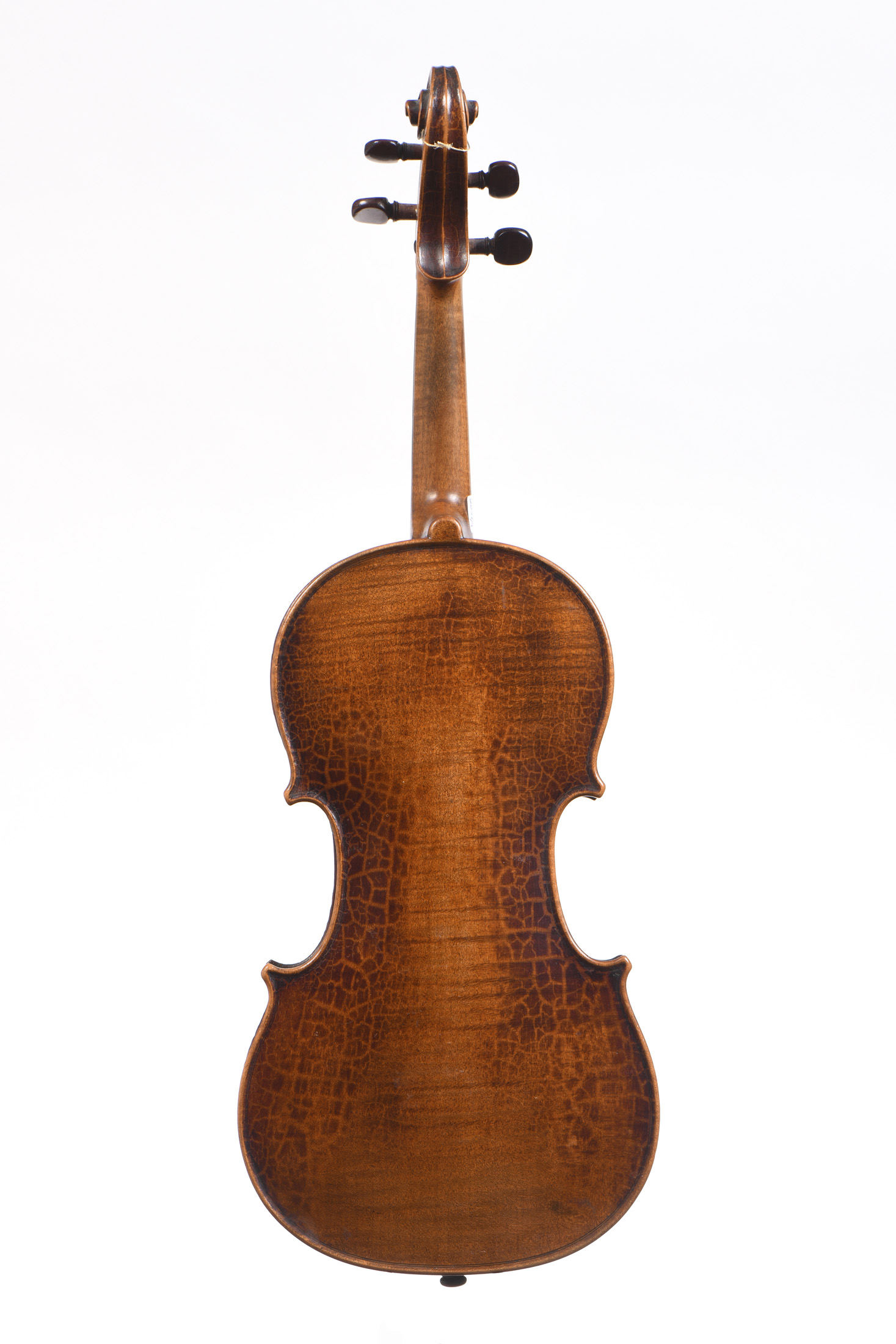 fait à Mirecourt au début du XXe siècle. Portant une étiquette apocryphe de Nicolaus Amatius 1761. Vernis brun doré, craquelé. Fond d'une pièce. 360 mm.