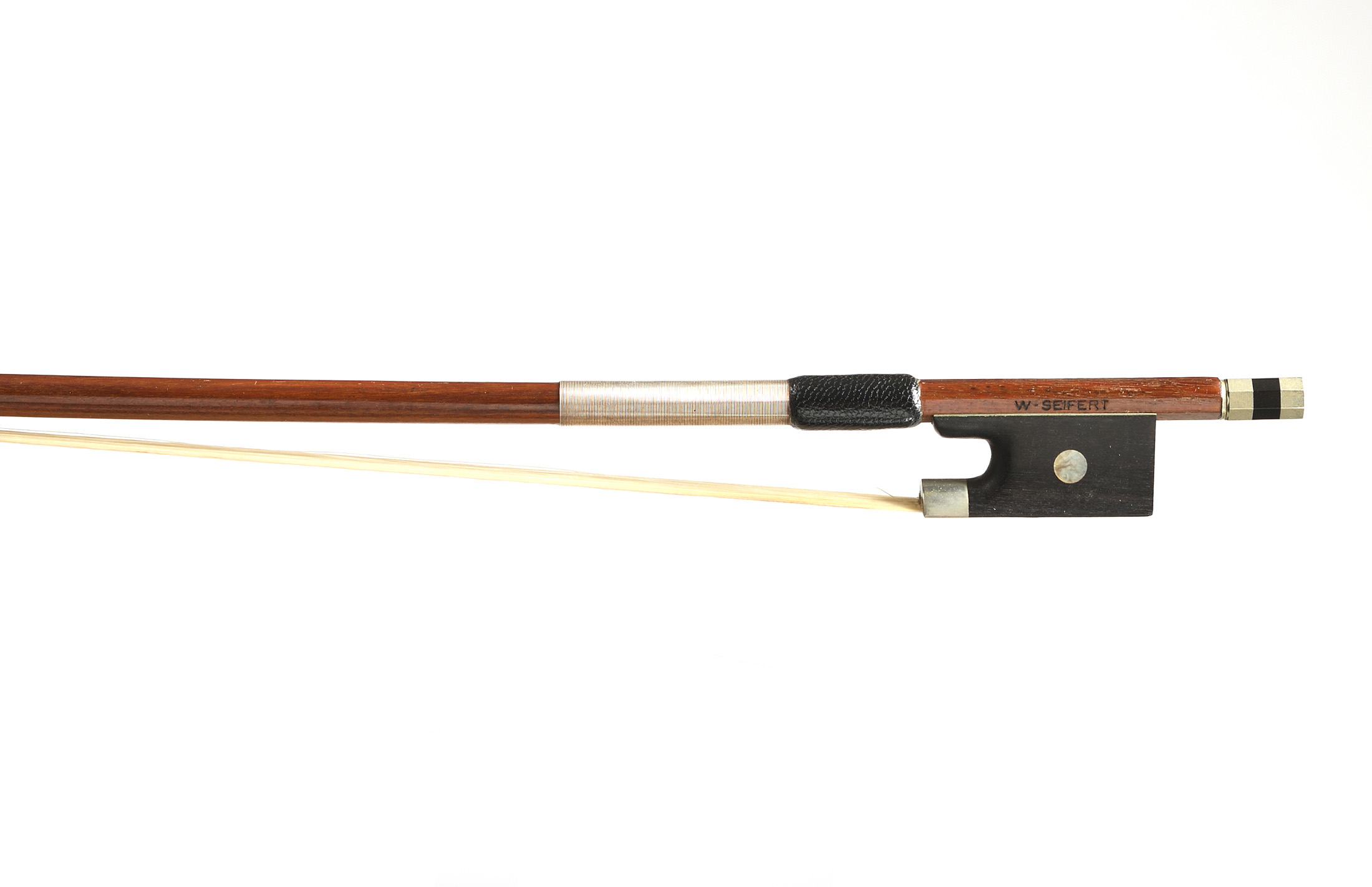dont il porte la marque au fer. Baguette ronde en bois de pernambouc. Haussé ébène montée maillechort. 727 mm. 59,3 g.