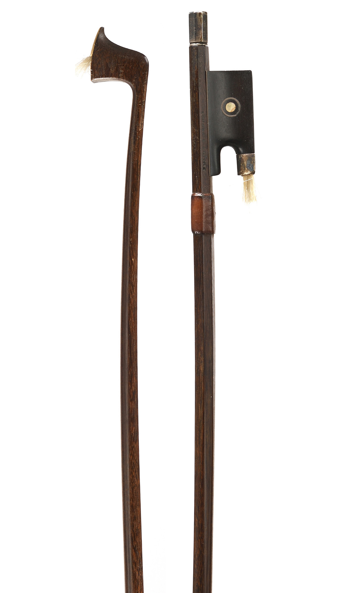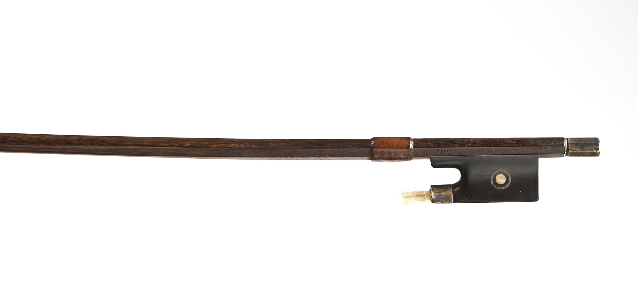 fait chez JTL dont il porte la marque au fer "SARASATE MAITRE". Baguette ronde en bois de pernambouc. Hausse ébène avec grain cerclé, montée argent.