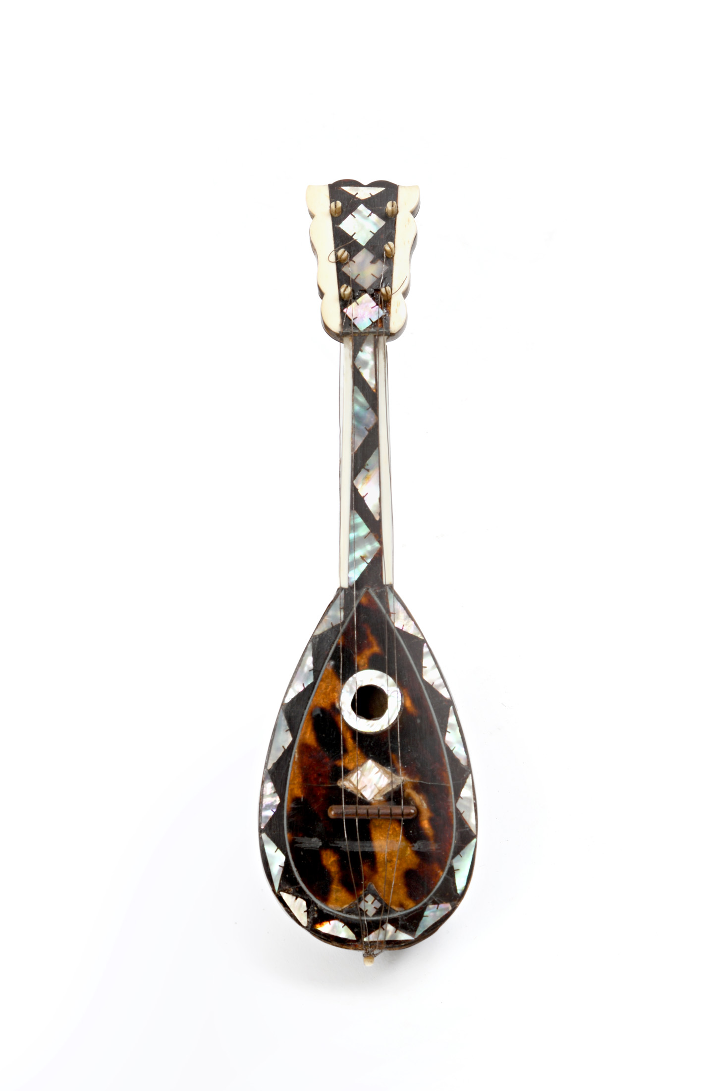 Petite mandoline de décoration, Circa 1900, en écaille et incrustations de nacres.
