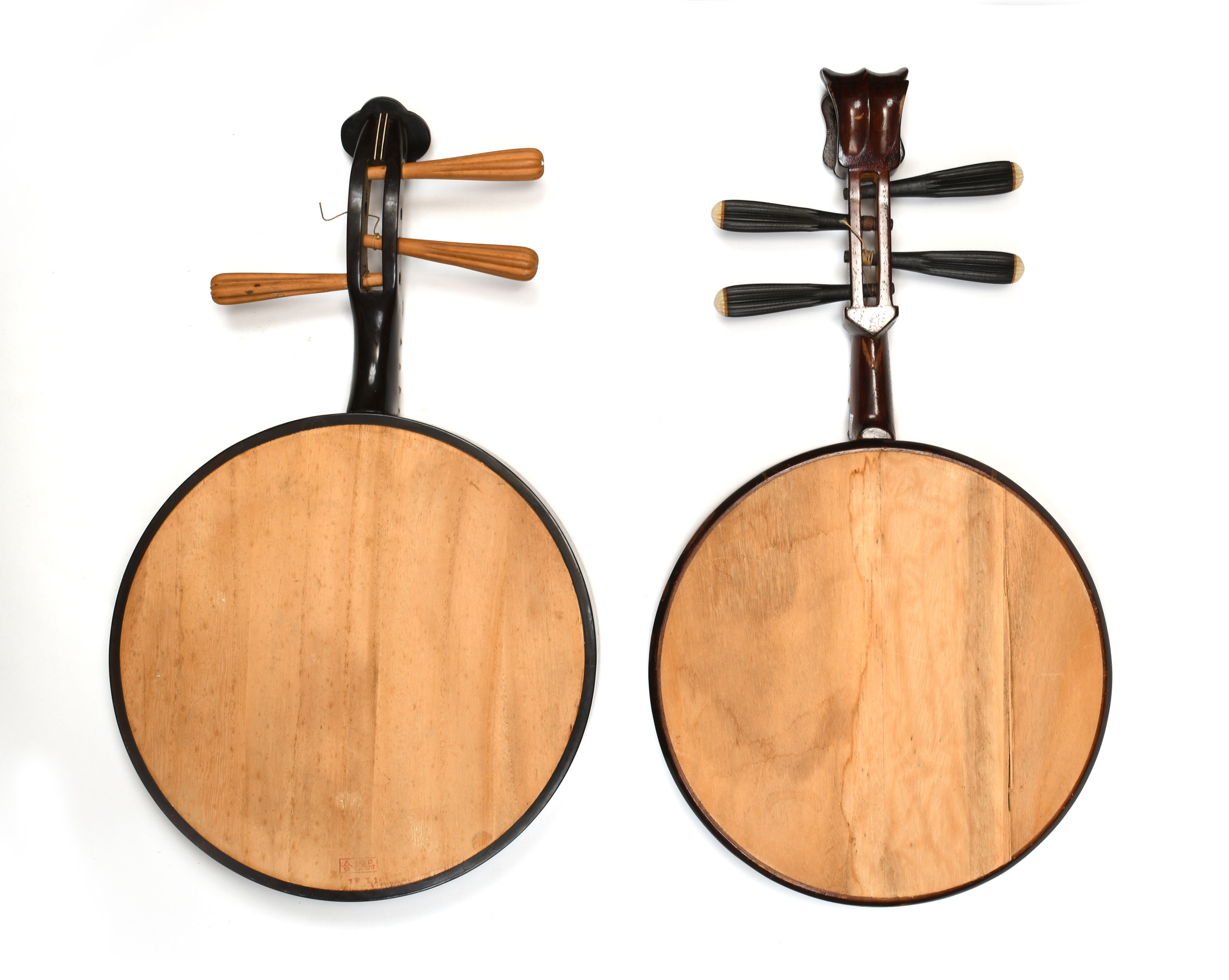 Instrument traditionnel Chinois. Caisse circulaire. "Yueqin" ou "Yueh ch'in". L'ensemble est à restaurer: Importantes cassures.