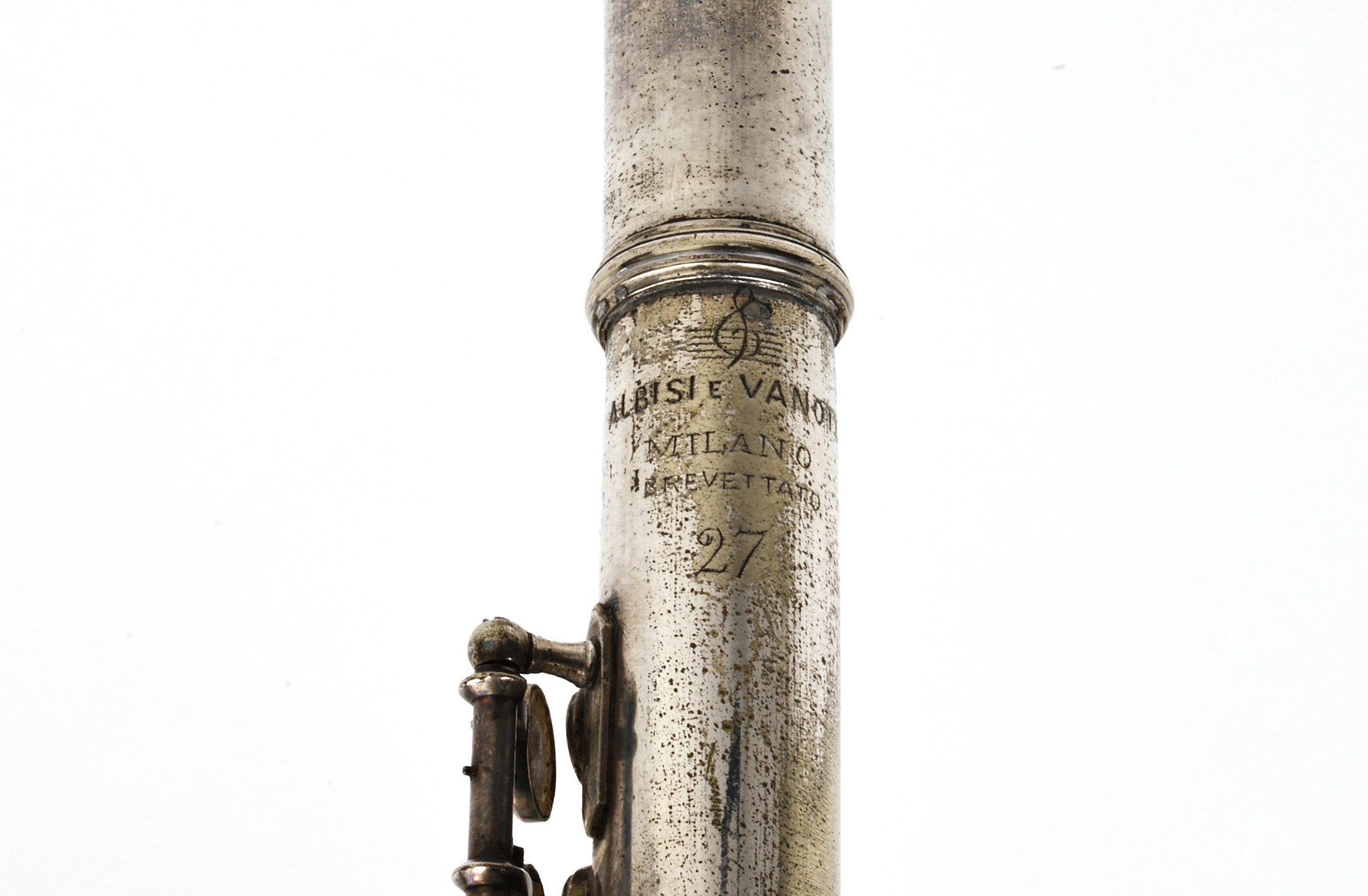 Flûte Albisi & Vanotti à plateaux. Ressorts tampons à revoir. Argentée. En l'état.