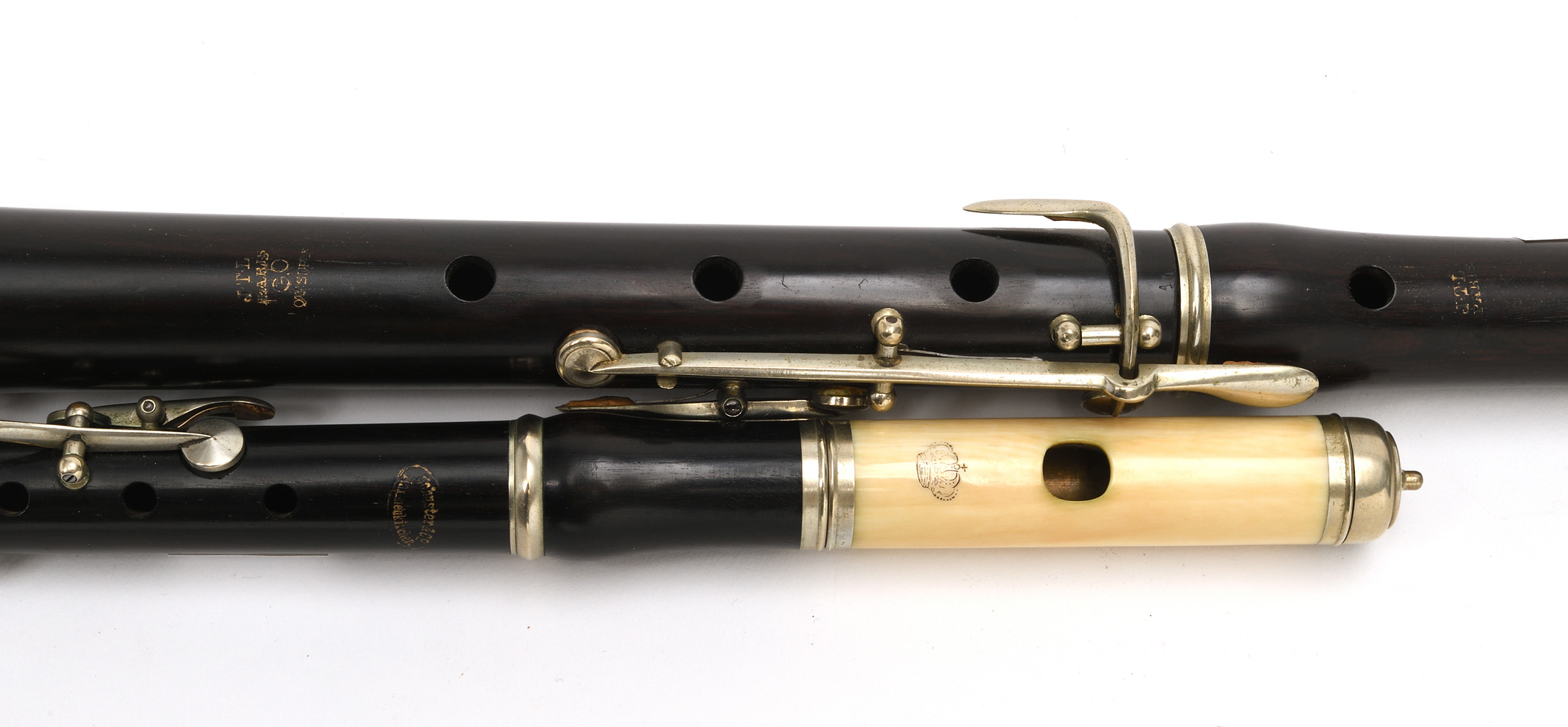Accompagnée d'une flûte piccolo SCHUSTER & GODFRIED, tête en ivoire, bocal et corps en ébène, cerclée à 6 clés en maillechort.