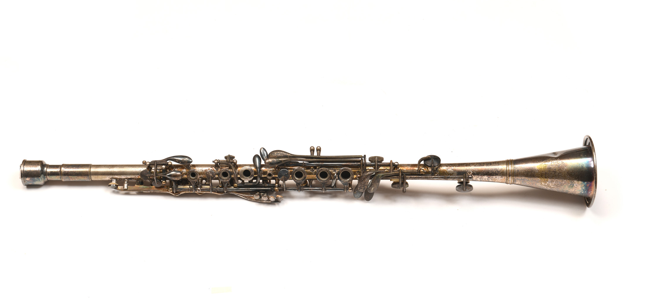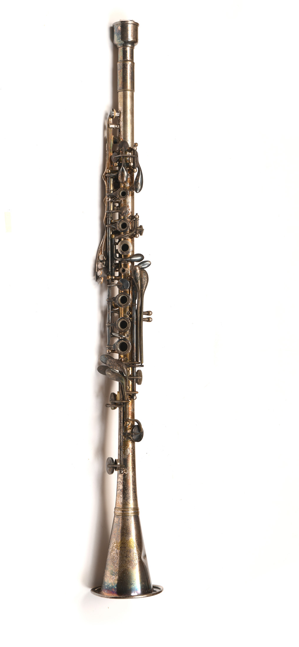 Une clarinette en si bémol, de marque HN-WHITE Company CLEVELAND. Argent. Bossuée.