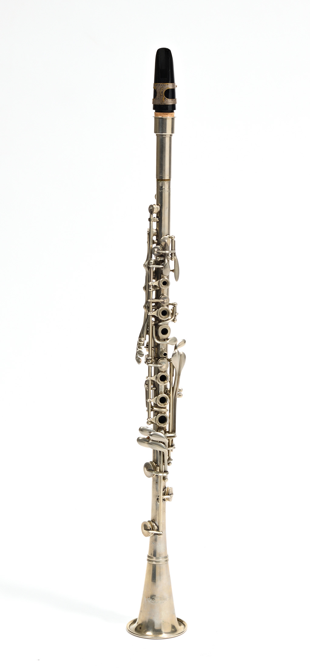 Une clarinette en si bémol, en nickel, de marque Laubé. Dans son étui.