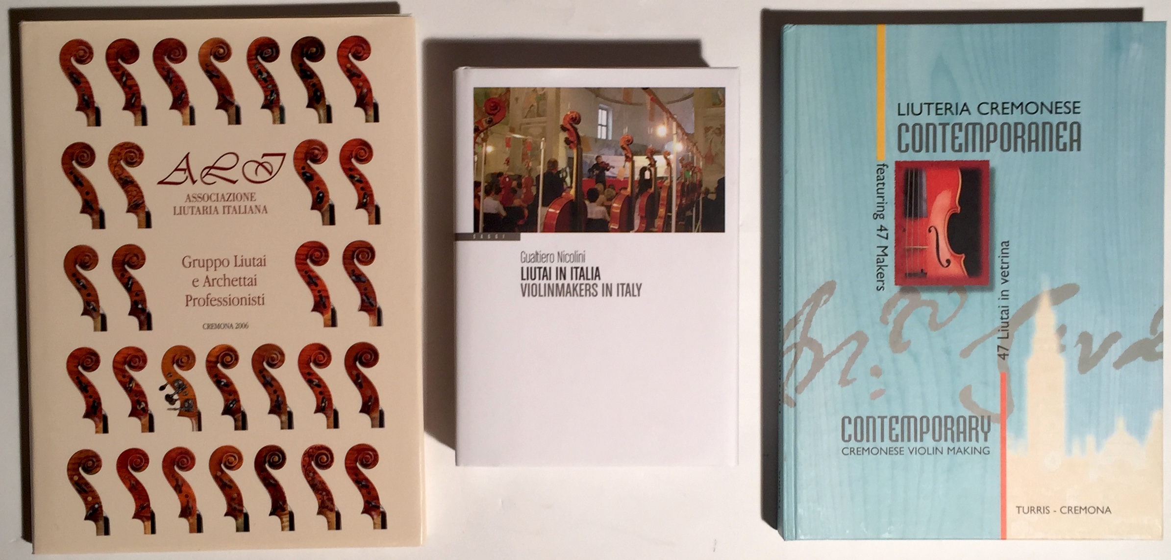- "ALJ Associazione liutaria italiana. Gruppo Liutai e Archettai Professionisti". Cremona 2006. Edizioni Novecento. (Italien et Anglais).