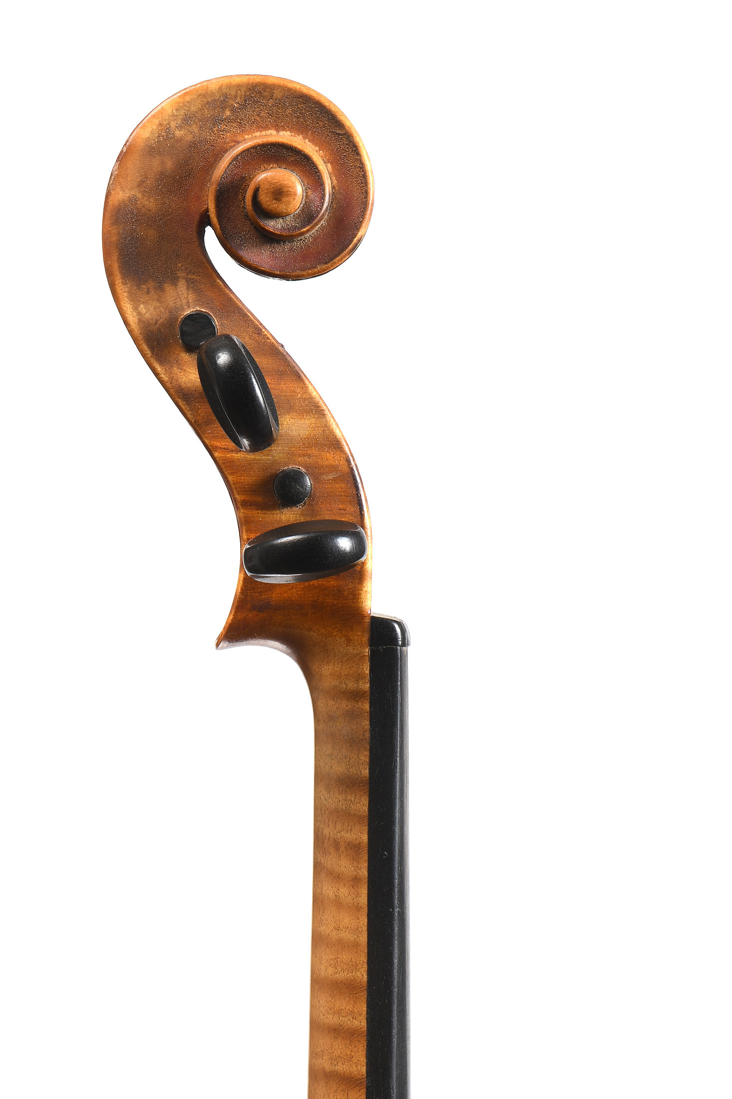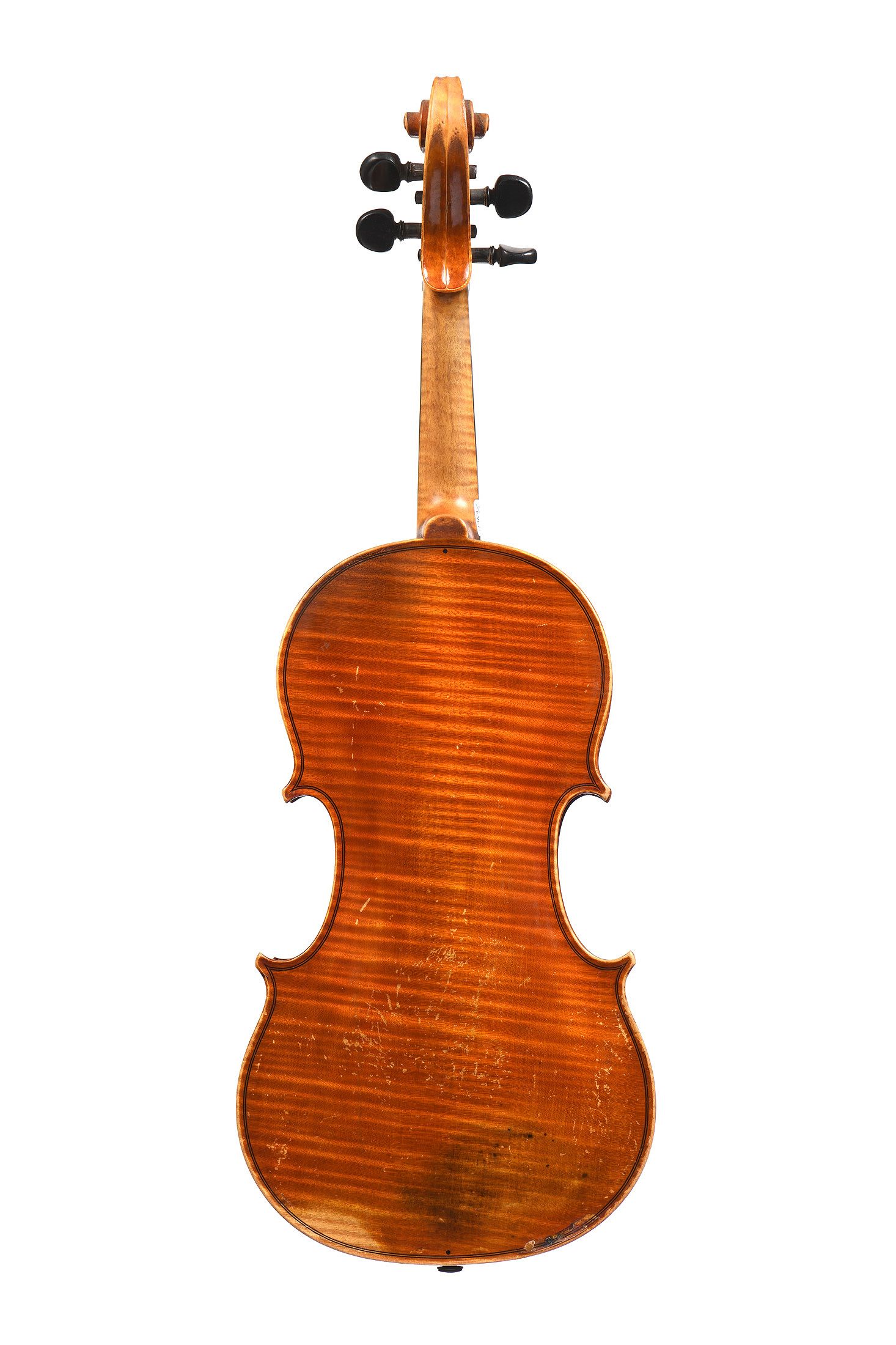 fait dans les ateliers MEINEL, dont il porte l'étiquette, au millésime de 1926. Ainsi qu'une marque au fer "896 AM". Beau fond d'une pièce en érable, avec goupilles. Vernis brun orangé sur fond doré. 361 mm.