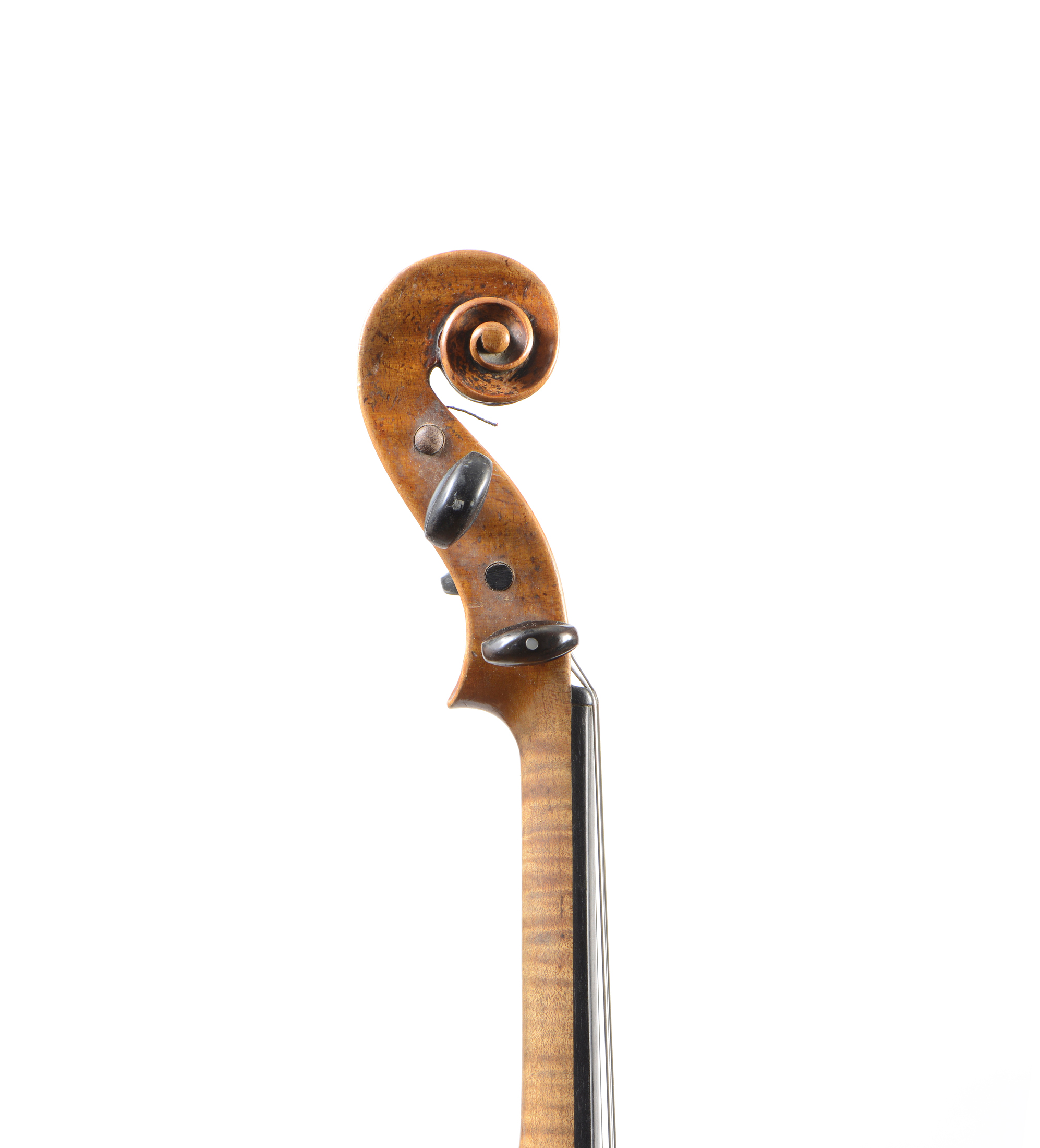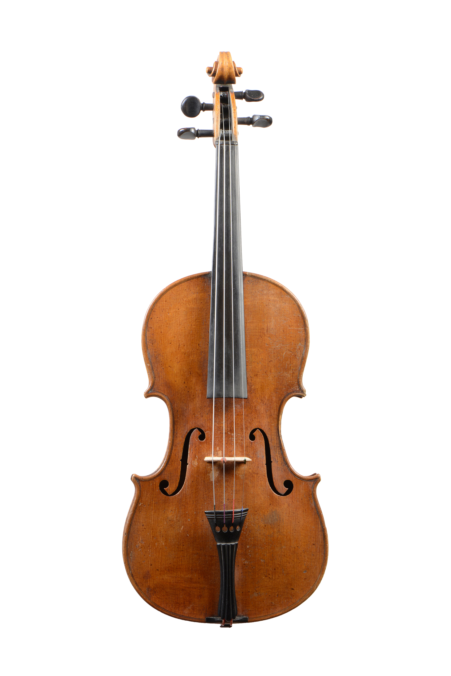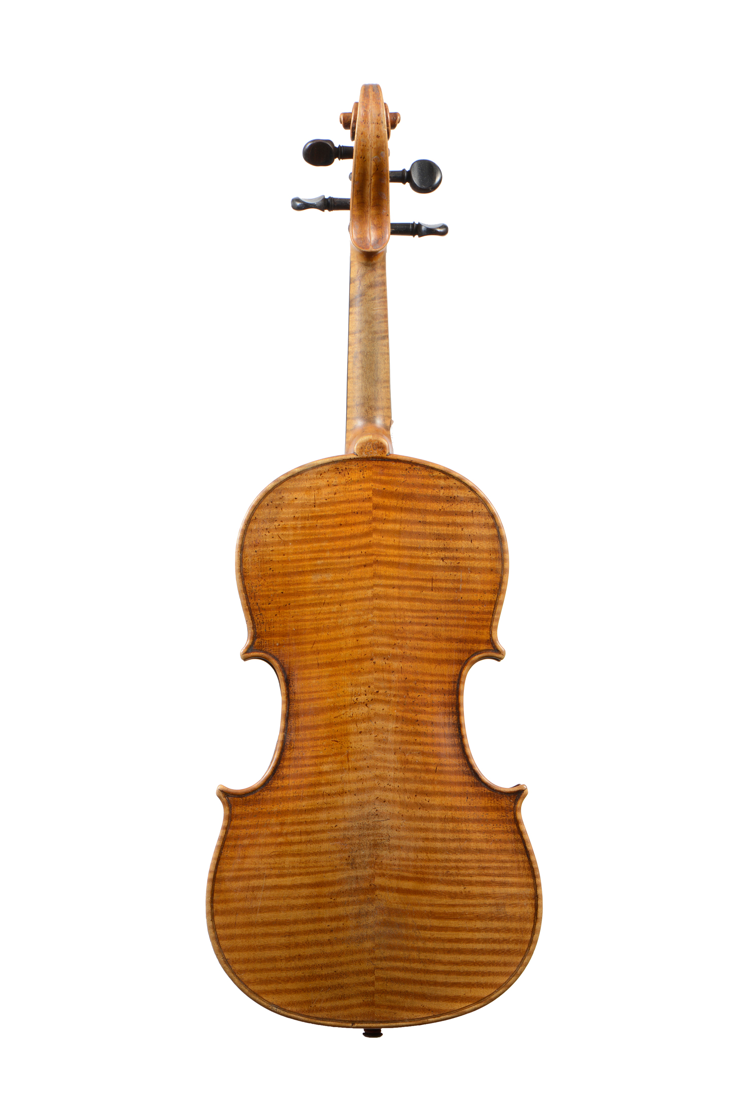 portant une étiquette Stradivarius, . Fond de deux pièces. Vernis brun sur fond doré. Avec boite et archet. 359 mm. Parfait état.