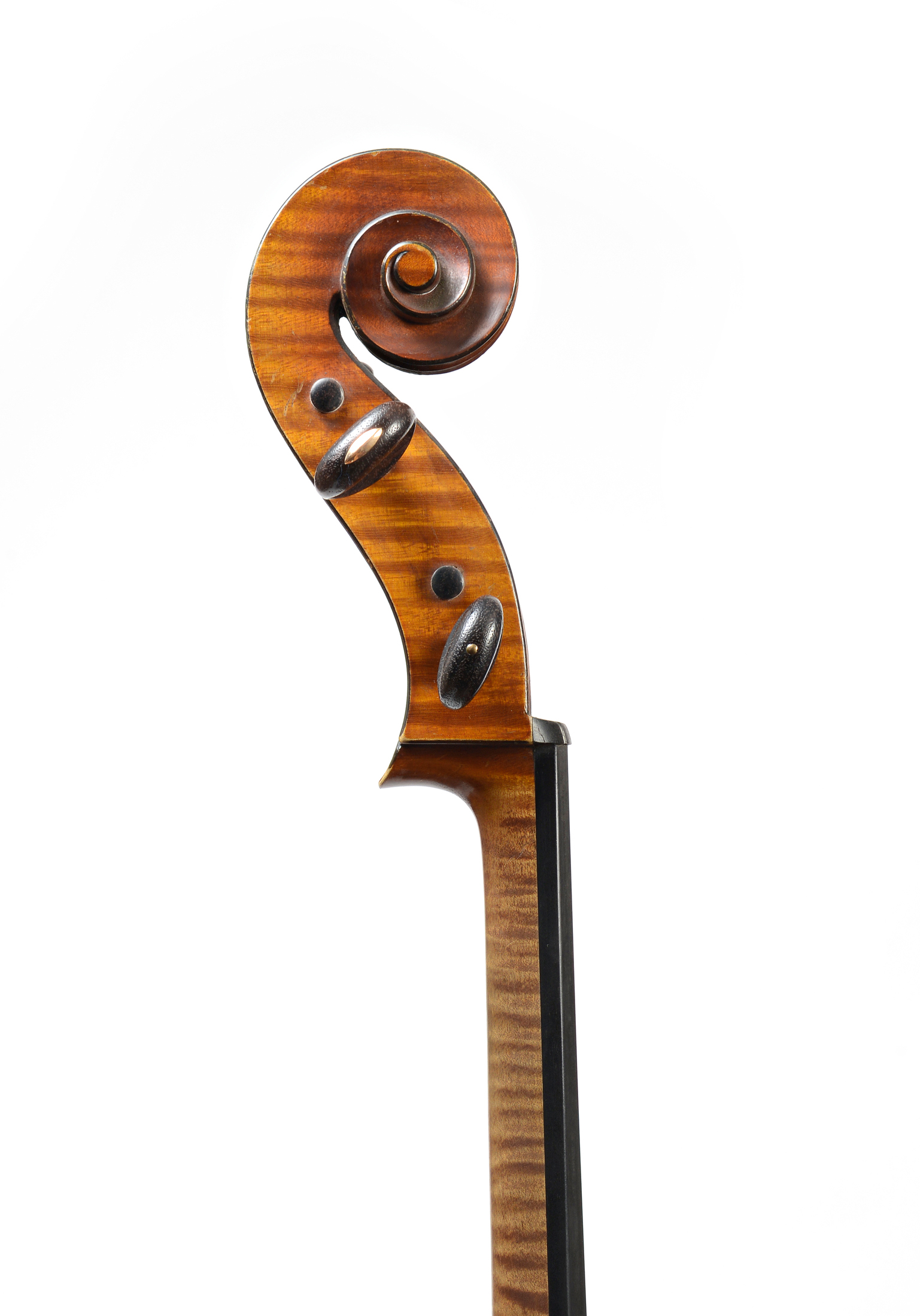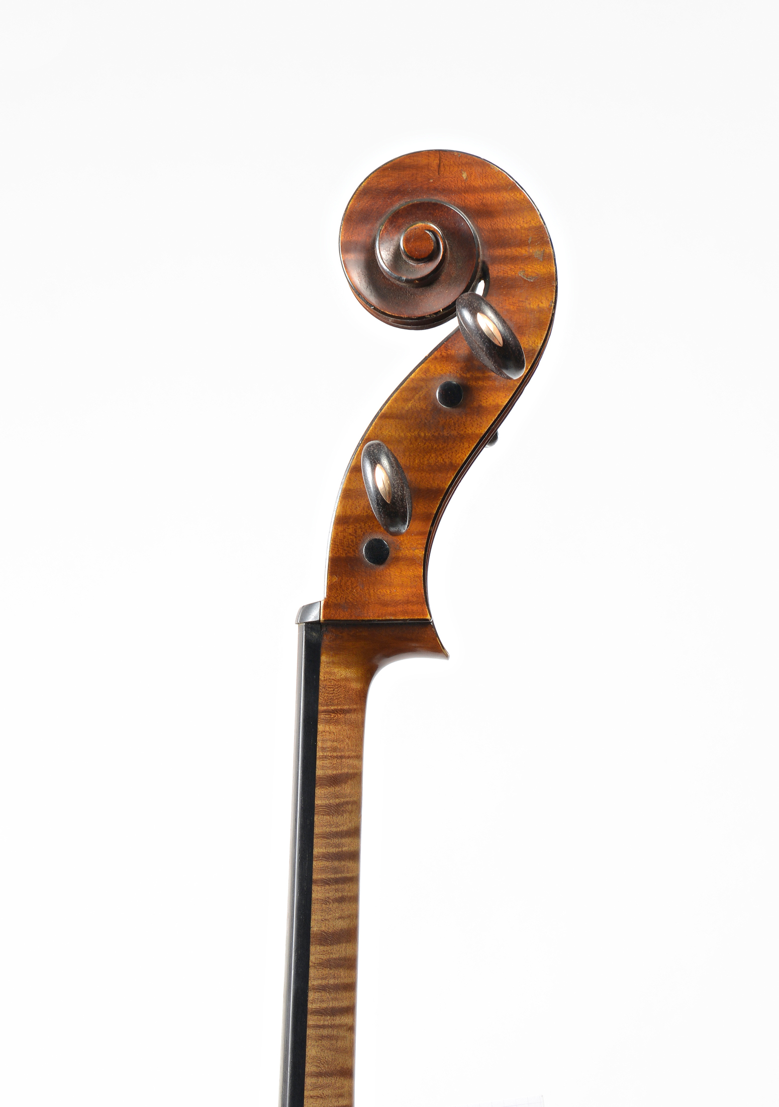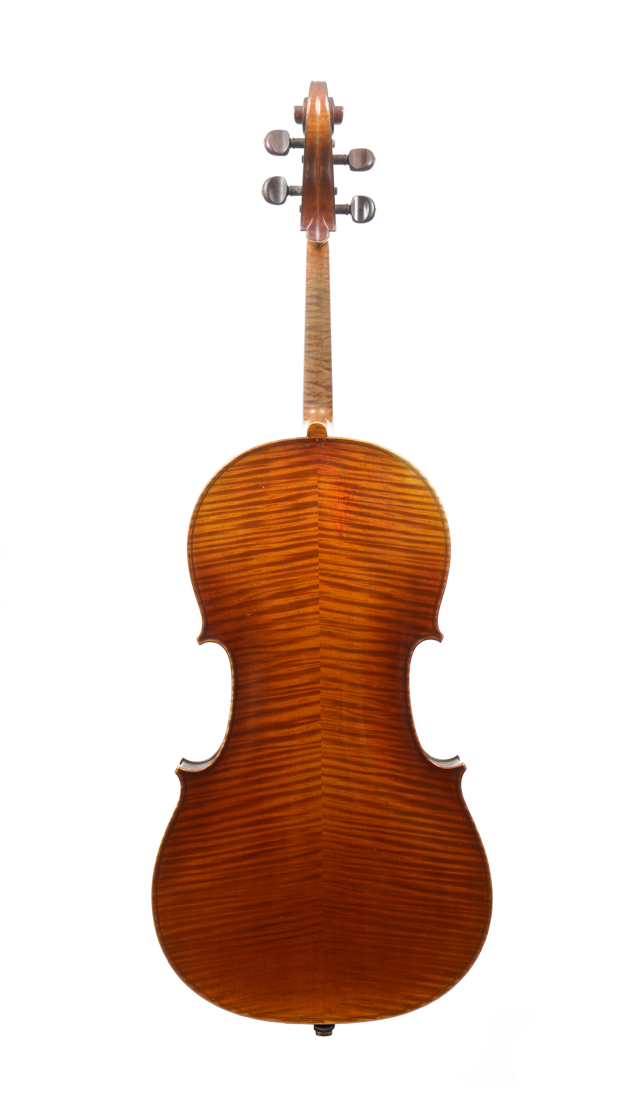 portant une étiquette Originale de Acoulon, des ateliers Jerome Thibouville Lamy. N°405 , daté de 1910. Cassure réparée sur le fond, en haut du flanc. Fond de deux pièces en bel érable aux ondes régulières. Eclisses et tête du même bois. Table en sapin. 761 mm. WITH ONE BOW.