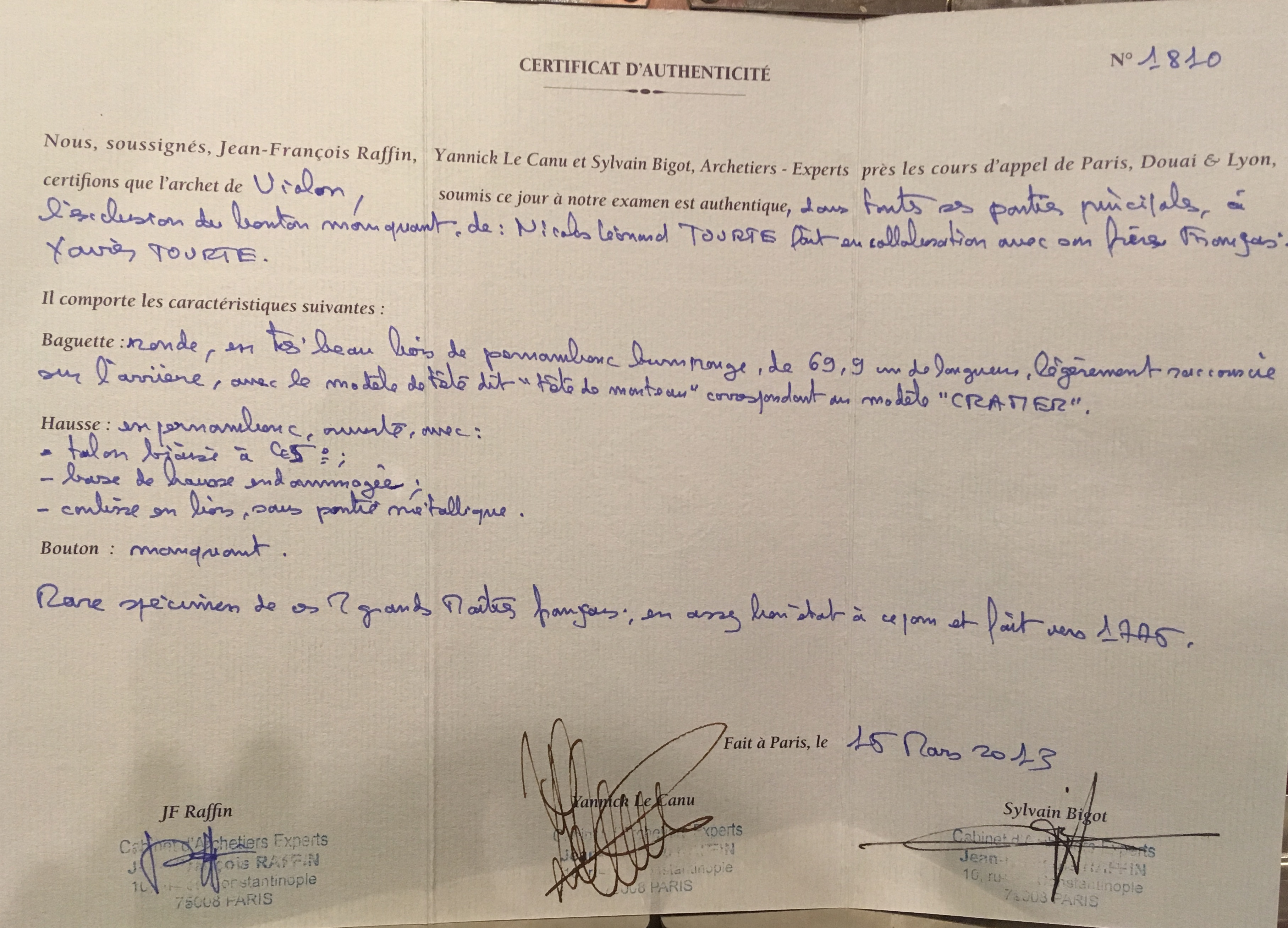 Avec un certificat du cabinet d'archetiers Experts Jean-François RAFFIN.