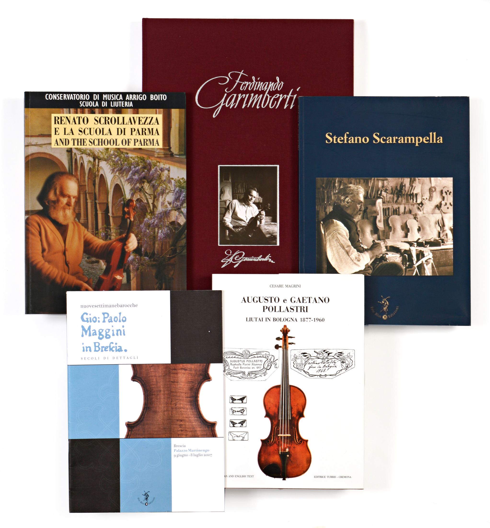 - "Augusto e Gaetano Pollastri. Cesare Magrini. Liutai in Bologna 1877-1960. Italian and English text. Editrice TURRIS - CREMONA. Parfait état (Perfect condition).