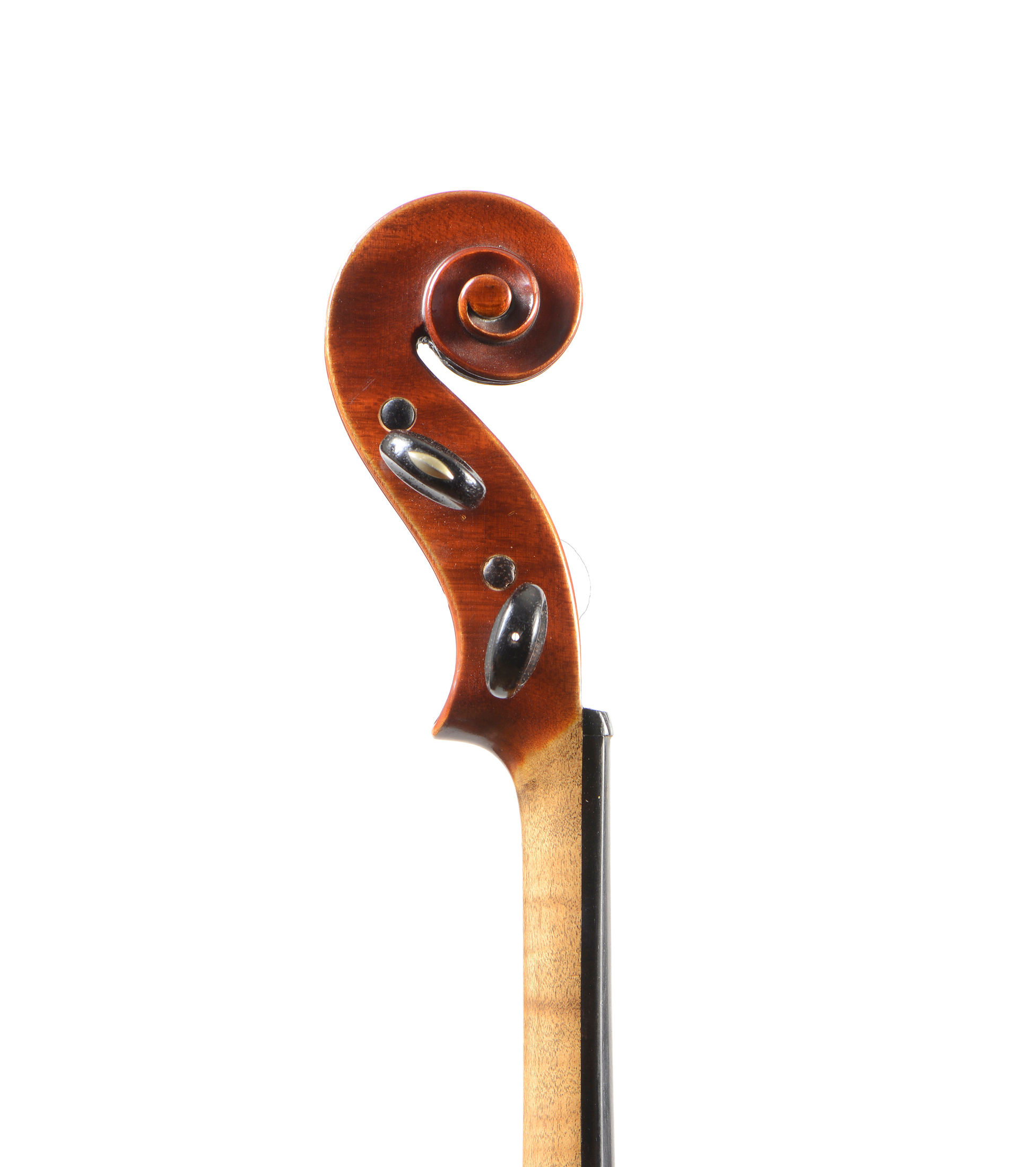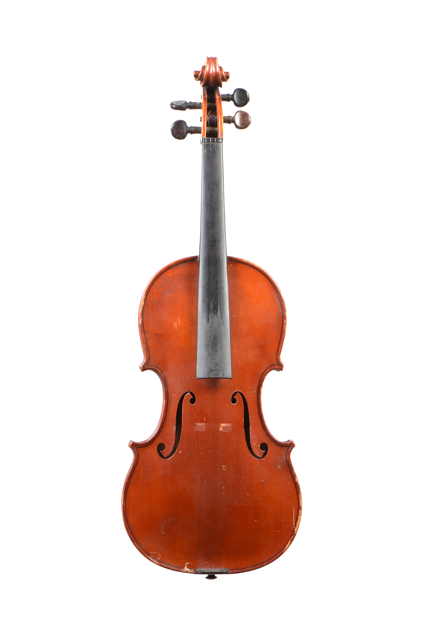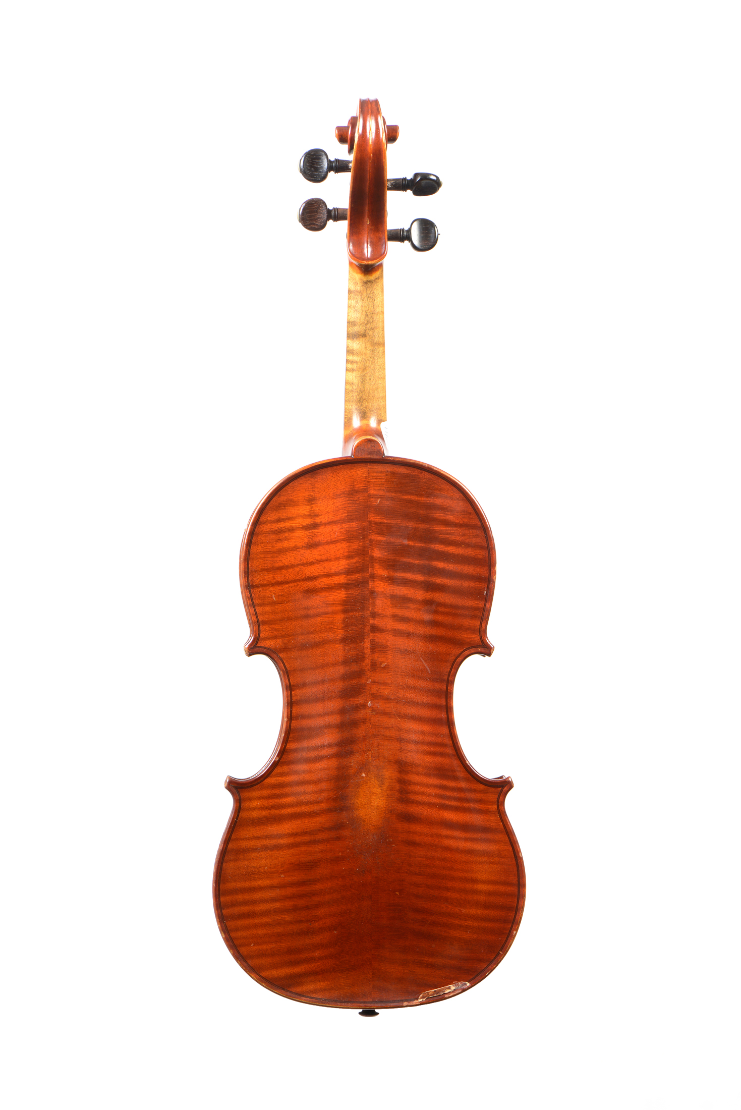 Paul Bisch à Mirecourt, fait en 1925, numéro 21. Fond de deux pièces en bel érable aux ondes flammées régulières. Fait en modèle Guarneri. Parfait état. 358 mm.