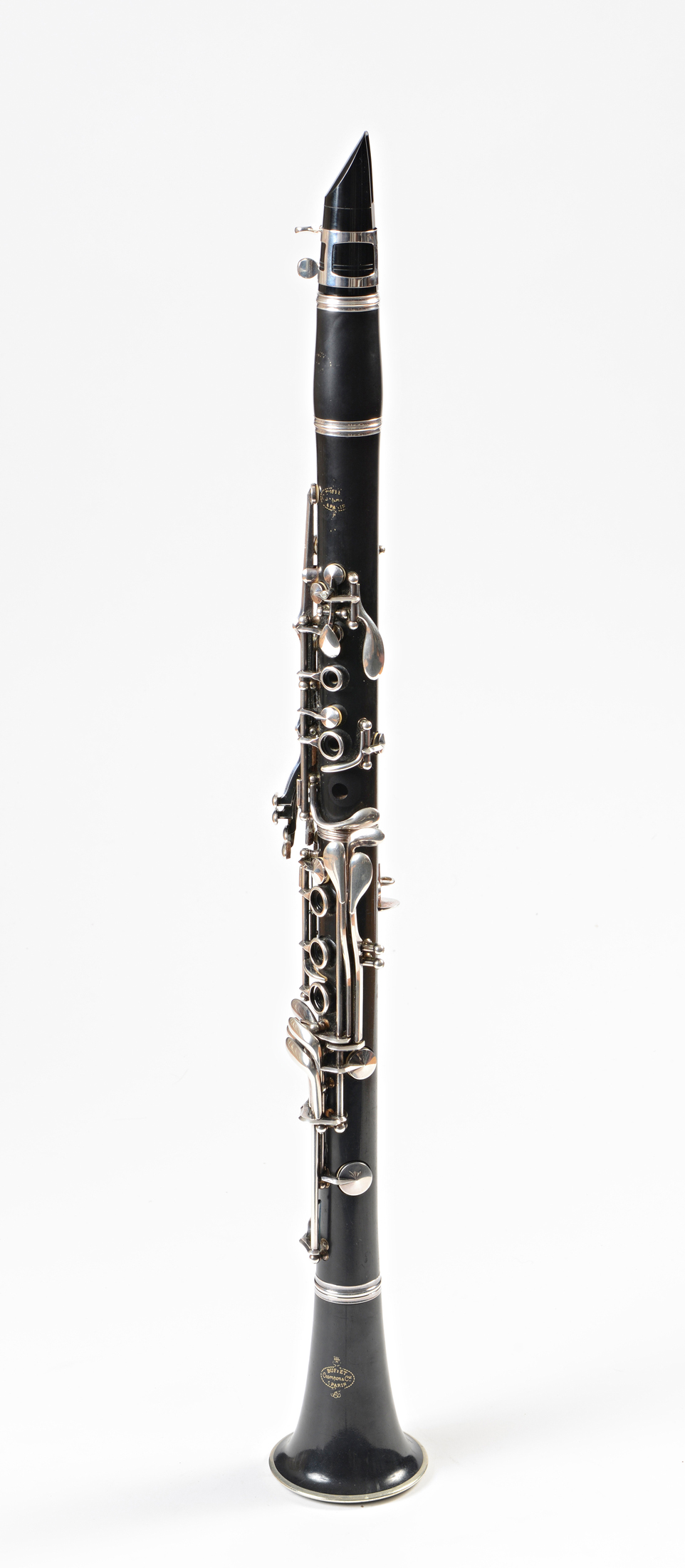 En bois d'ébène. Portant le numéro 823195. En bon état de jeu. Ressors et lièges en bon état. Bec Yamaha . Prêt à Jouer. Avec son étui.