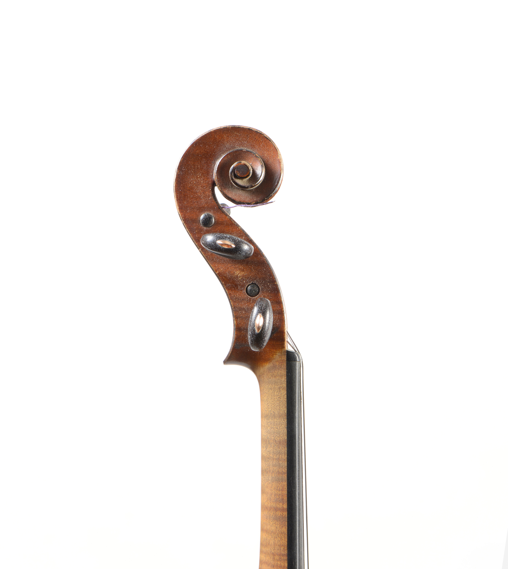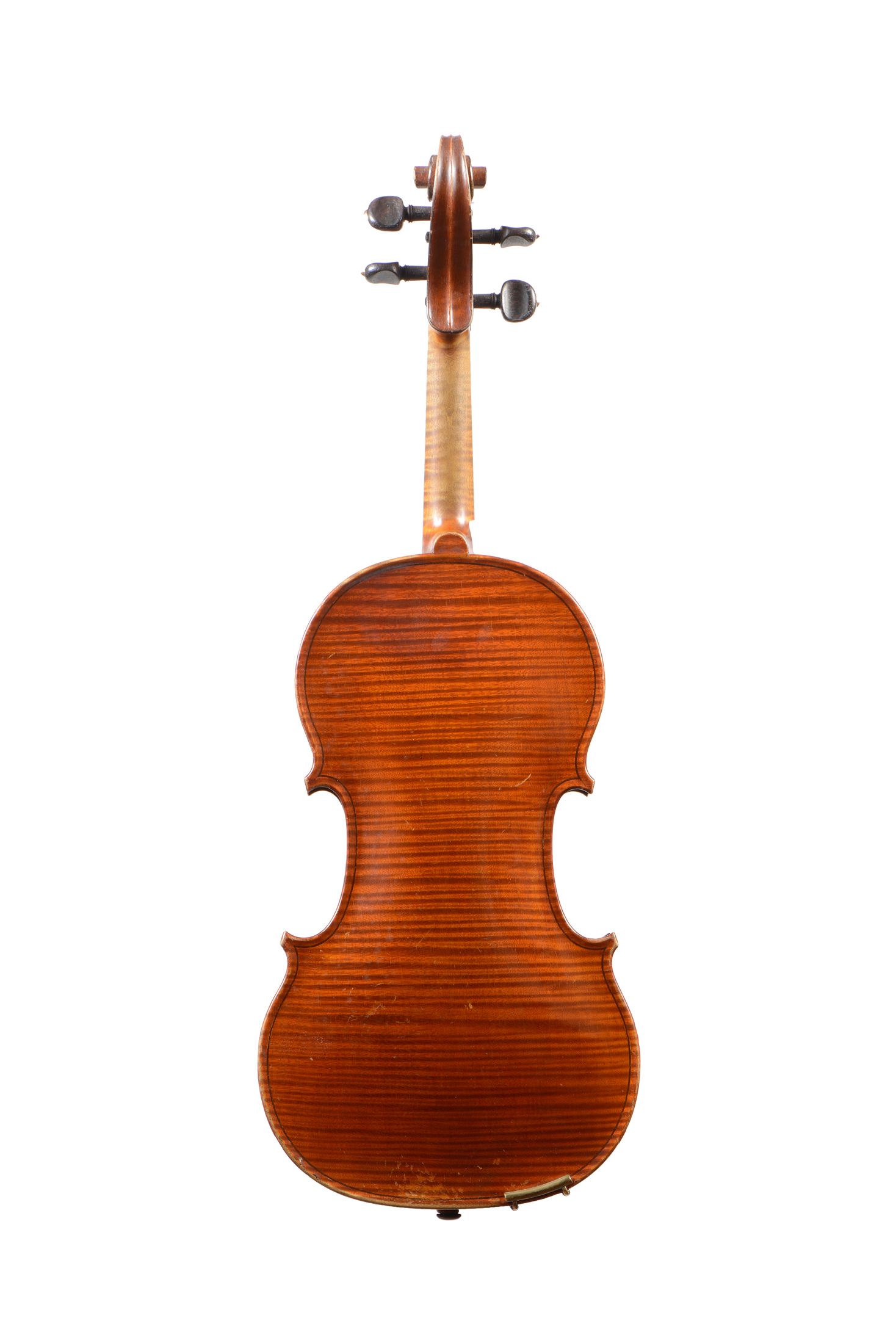 Fait à Mirecourt, dont il porte la marque au fer, et la signature " A la ville de Cremone..." Fond d'une pièce. Vernis orangé brun. 361 mm.