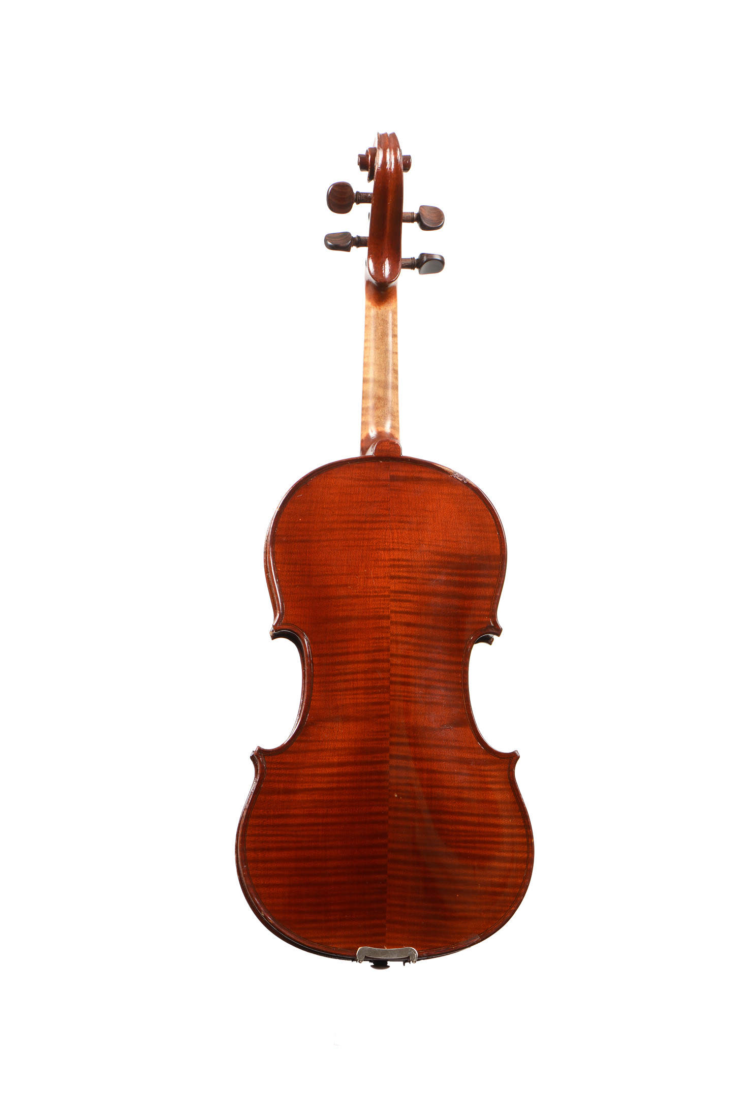 portant une étiquette "Copie de Guarnerius" 1720. Fond de deux pièces. Vernis Rouge sur fond doré. 356 mm. Bon état général. Traces de vers sur les éclisses.