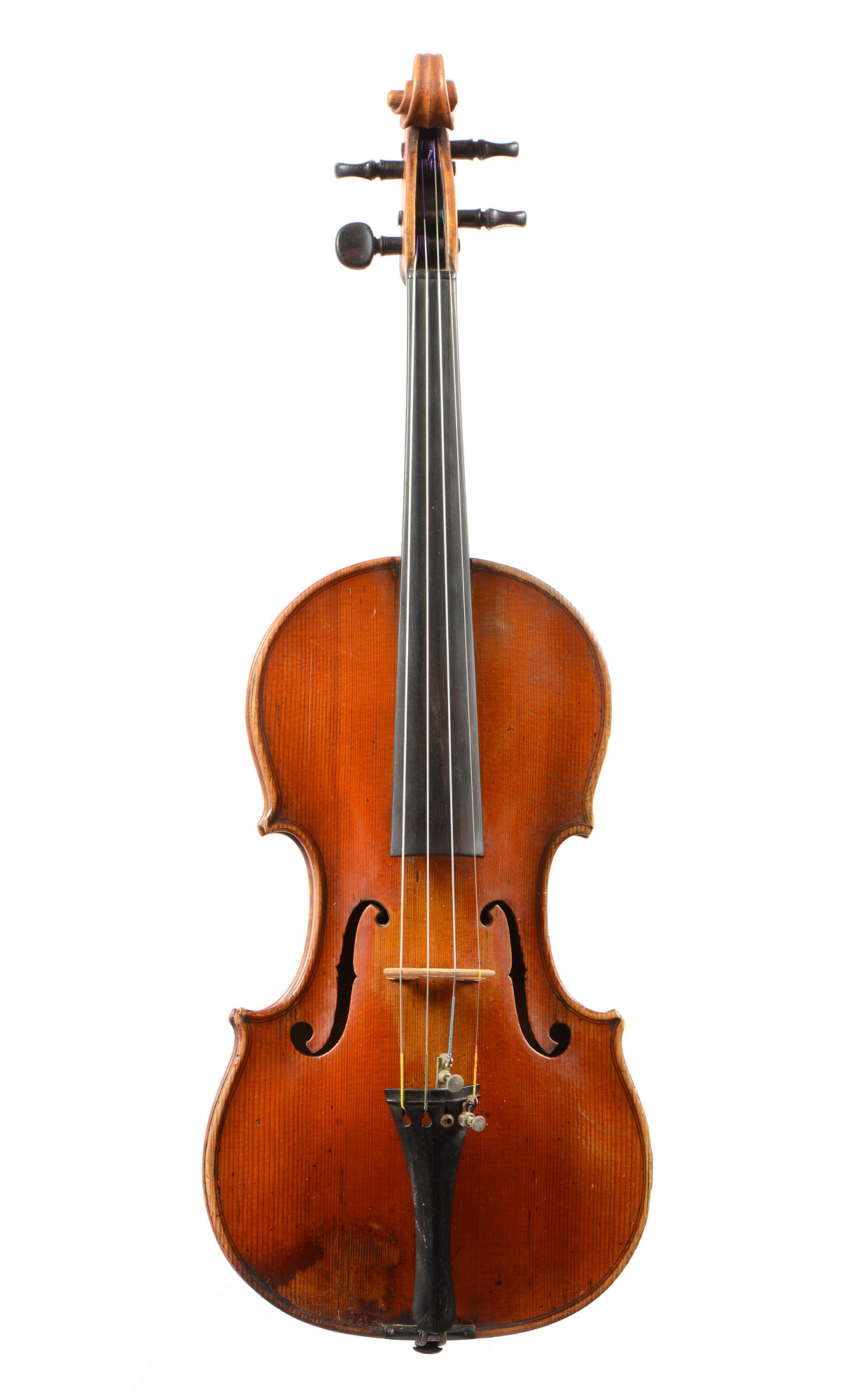fait par François Lejeune, dont il porte l'étiquette datée de 1754. Fond de deux pièces en très bel érable aux ondes flammées et descendantes. Eclisses et tête aux ondes plus fines. Table en épicéa aux pores serrés au centre s'élargissant sur les bords. Bouton de la volute cassés. 357 mm. Bel exemplaire typique de cet auteur. Avec certificat pour assurance de Vatelot - Rampal (13 000 €).