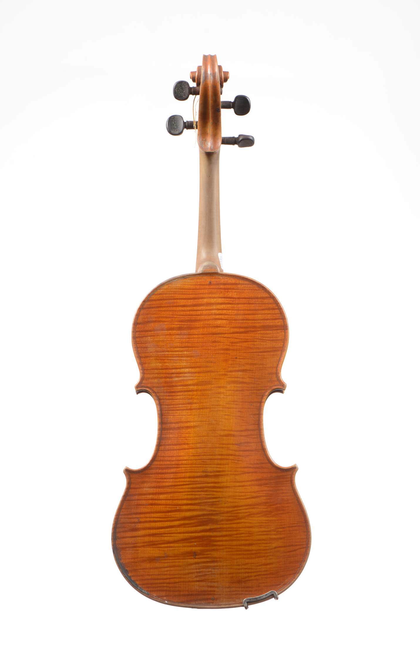 dont il porte la marque au fer à Paris. Fait vers 1850. Cassure de table à restaurer (flanc du bas, à gauche) Manque la touche. Beau fond d'une pièce. table de deux pièces aux pores larges. Avec boite et deux archets. 360 mm.