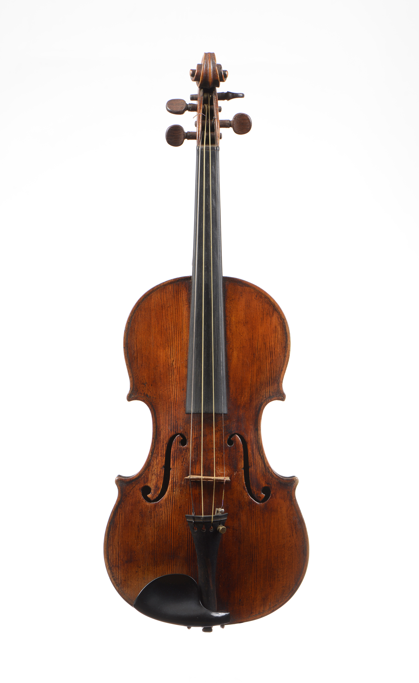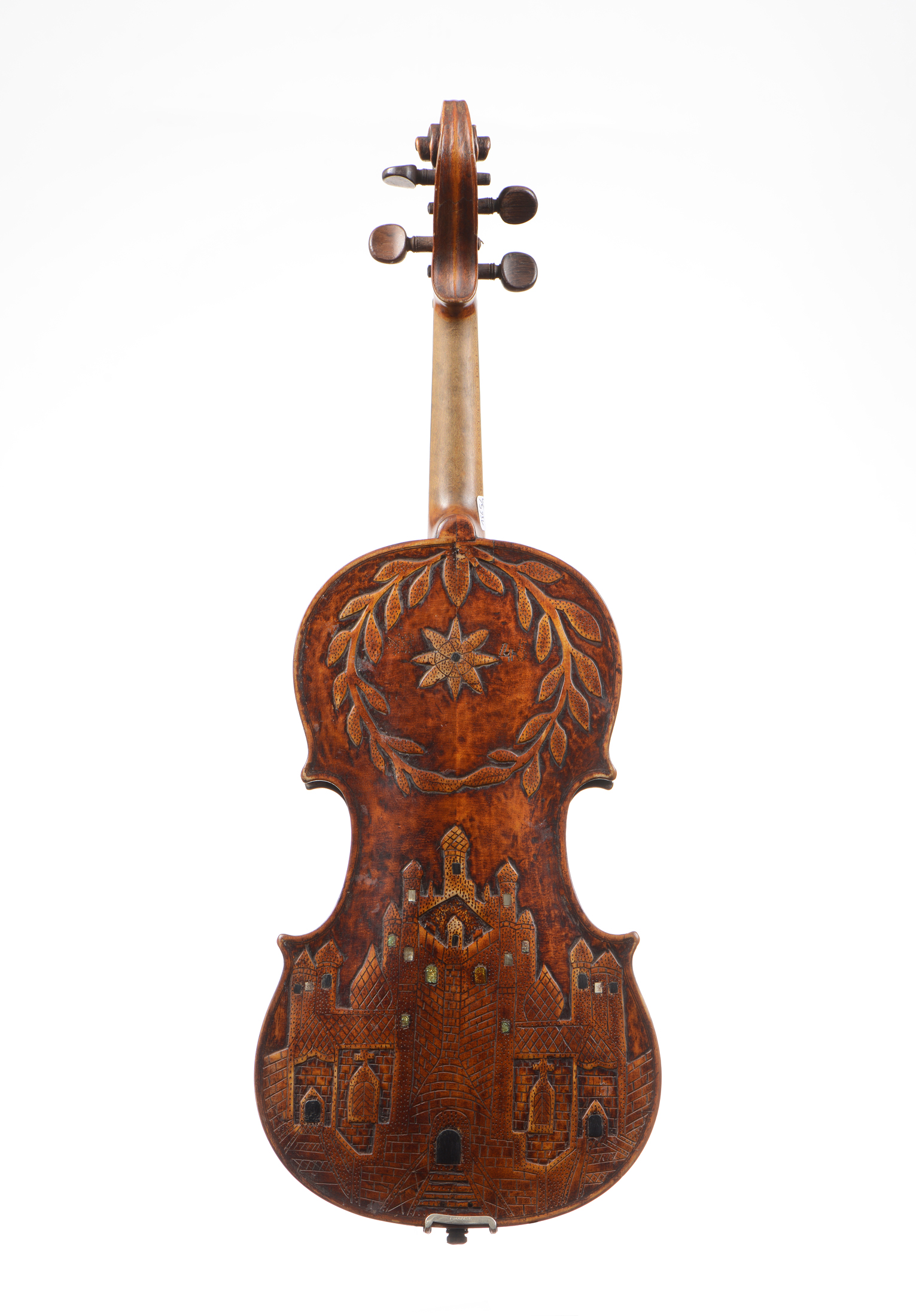 portant une étiquette apocryphe de Francesco Ruggeri, 1815. Fond de deux pièces, sculpté de couronne de laurier, et d'un chateau. Vernis brun doré. 358 mm. Tête cassée, et réparée par deux joues.