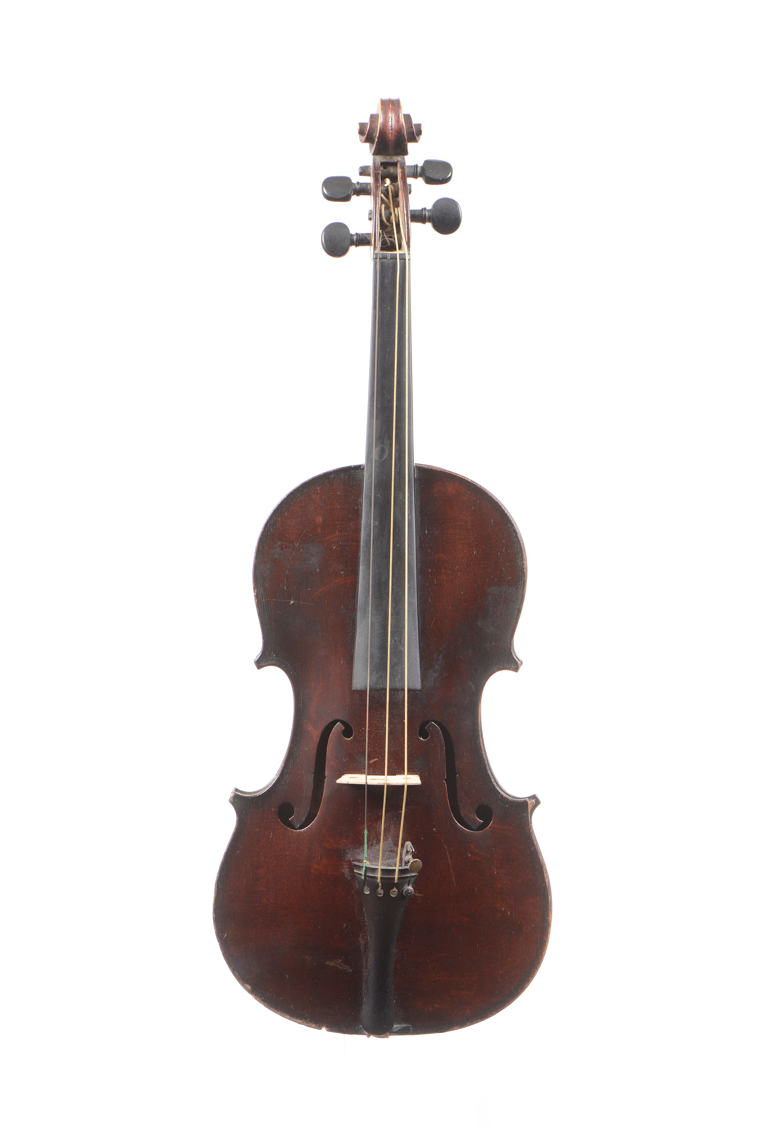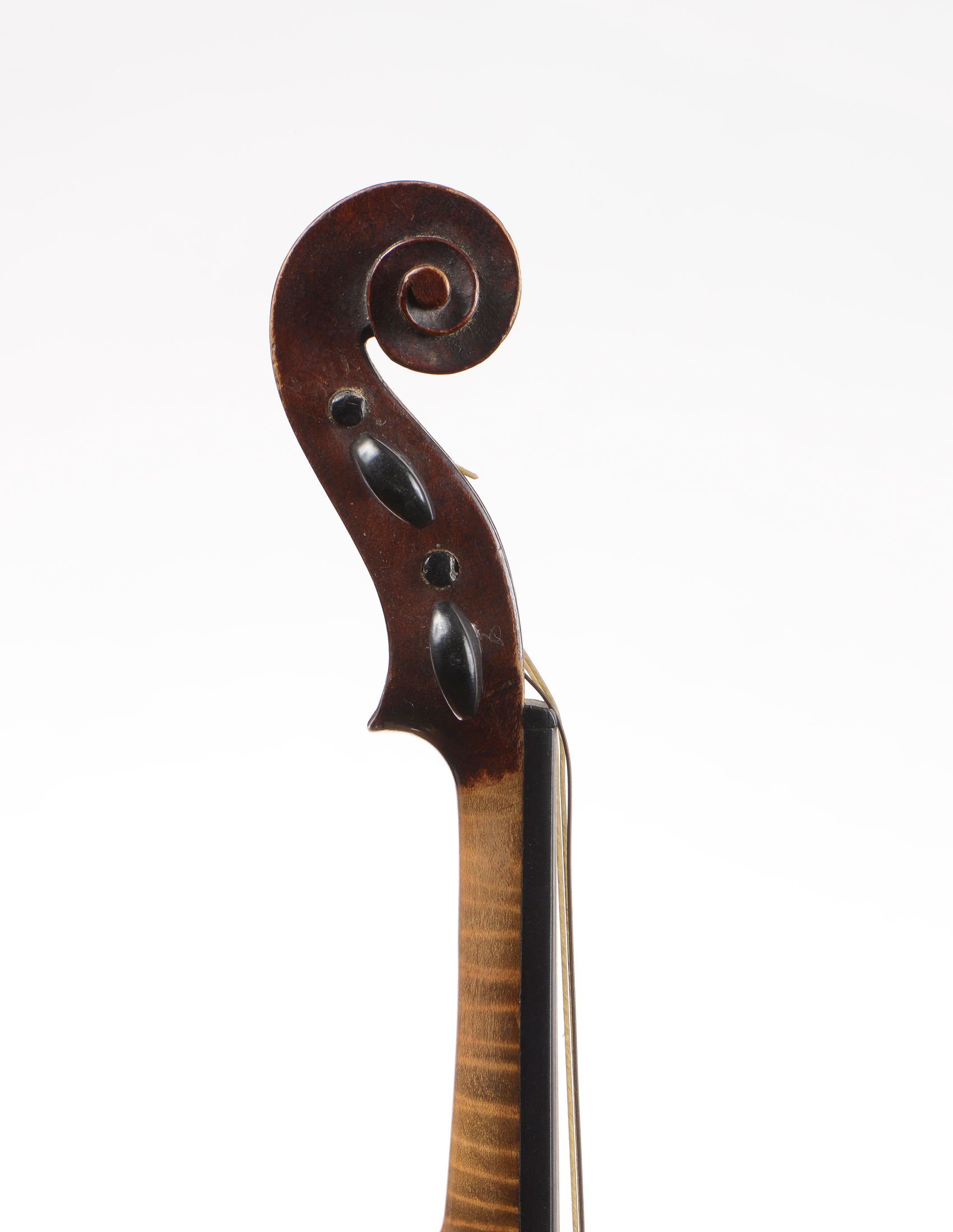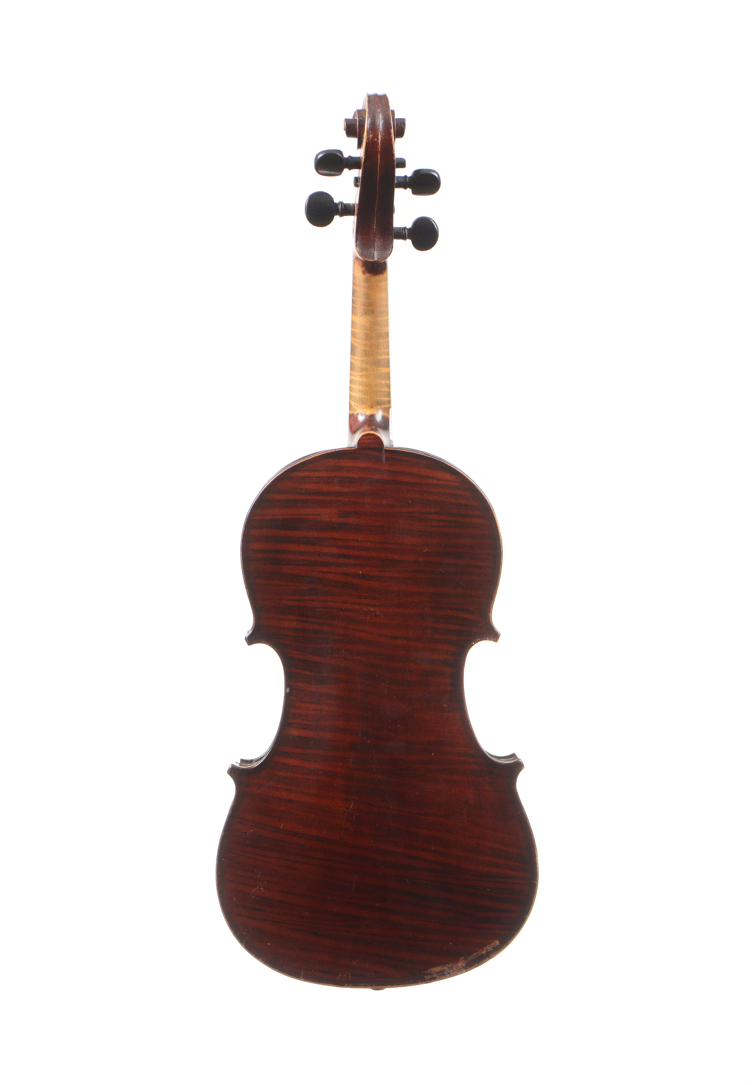 dont il porte l'étiquette GARINI. Violon 3/4 d'étude. Non fileté. Coin cassé. Vernis brun rouge.