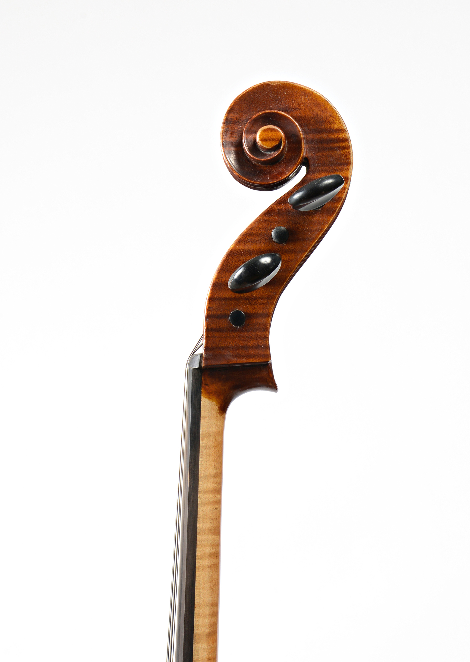 fait par RAINERI Eraclio, de 1947 à Gêne, élève de Cesare Candi. Fond, éclisses, et tête en érable ondé. Table en sapin. L'ensemble en parfait état. Prêt à jouer. 760 mm.