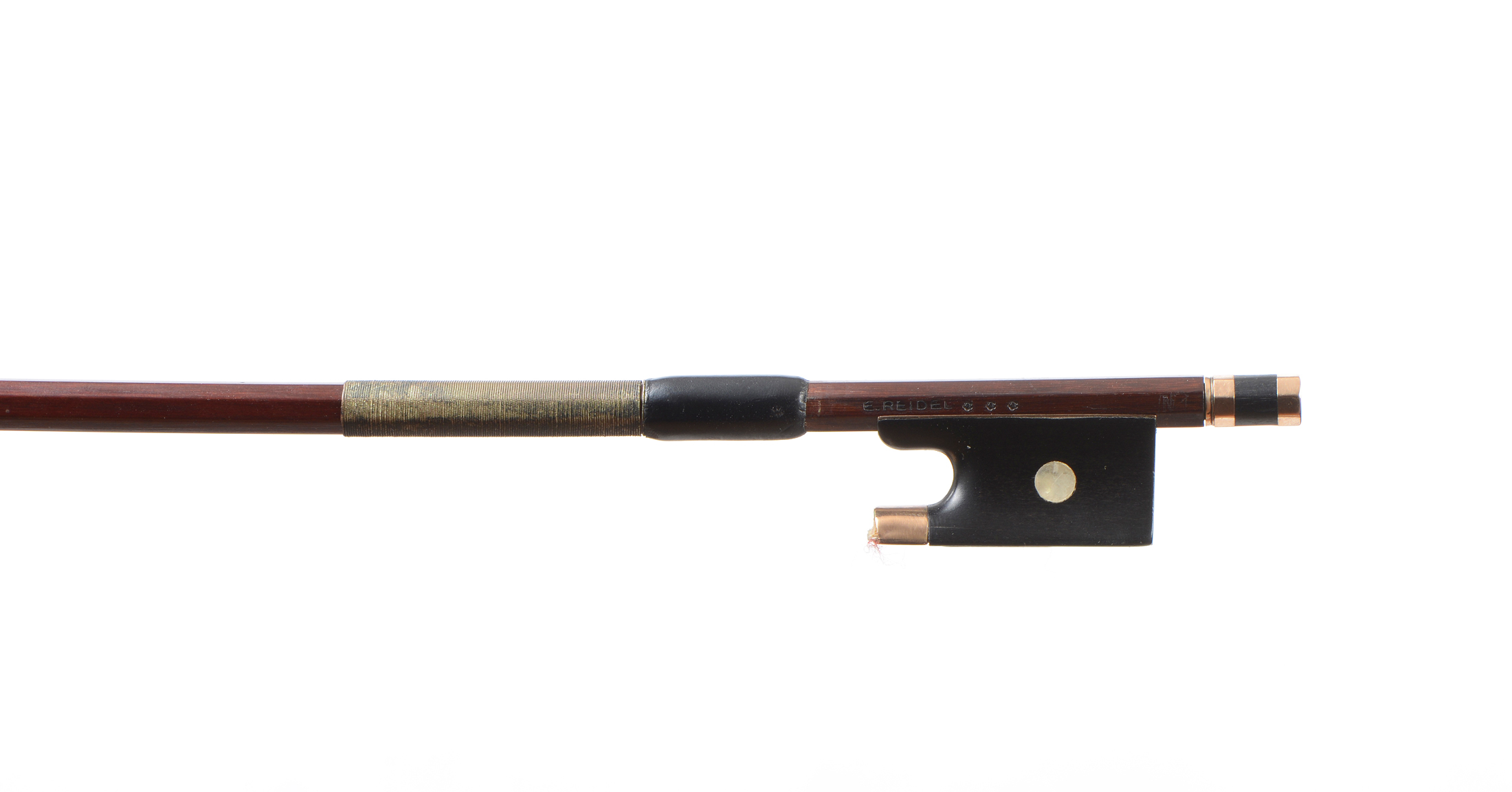 portant la marque originale "E.REIDEL" et trois étoiles, ainsi qu'une marque à la tête: 12. Baguette octogonale en beau bois de pernambouc brun rouge. Hausse ébène montée or. 727 mm. 55 g sans mèche.
