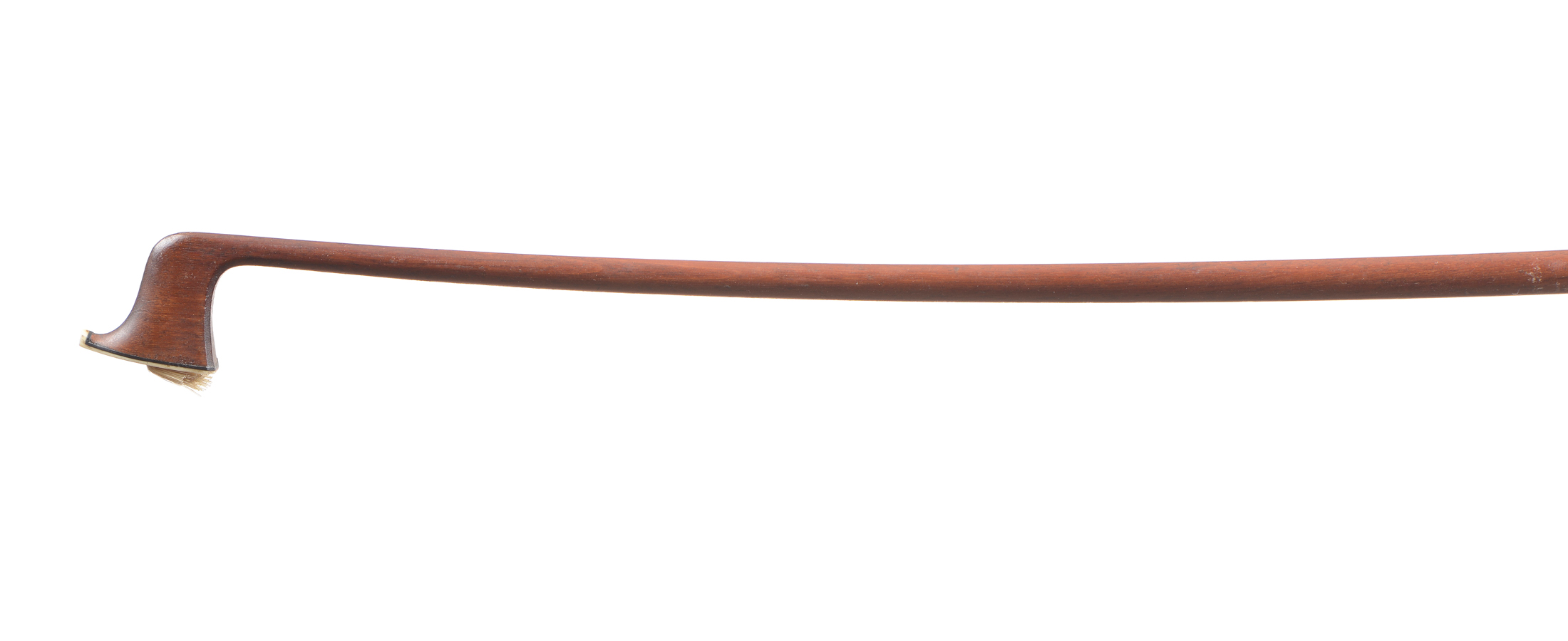 Portant une marque presque illisible de Louis BAZIN. Usure à la tête. Usures. Baguette en pernambouc. Hausse abimée en ébène d'un autre auteur. Monté maillechort. 729 mm.