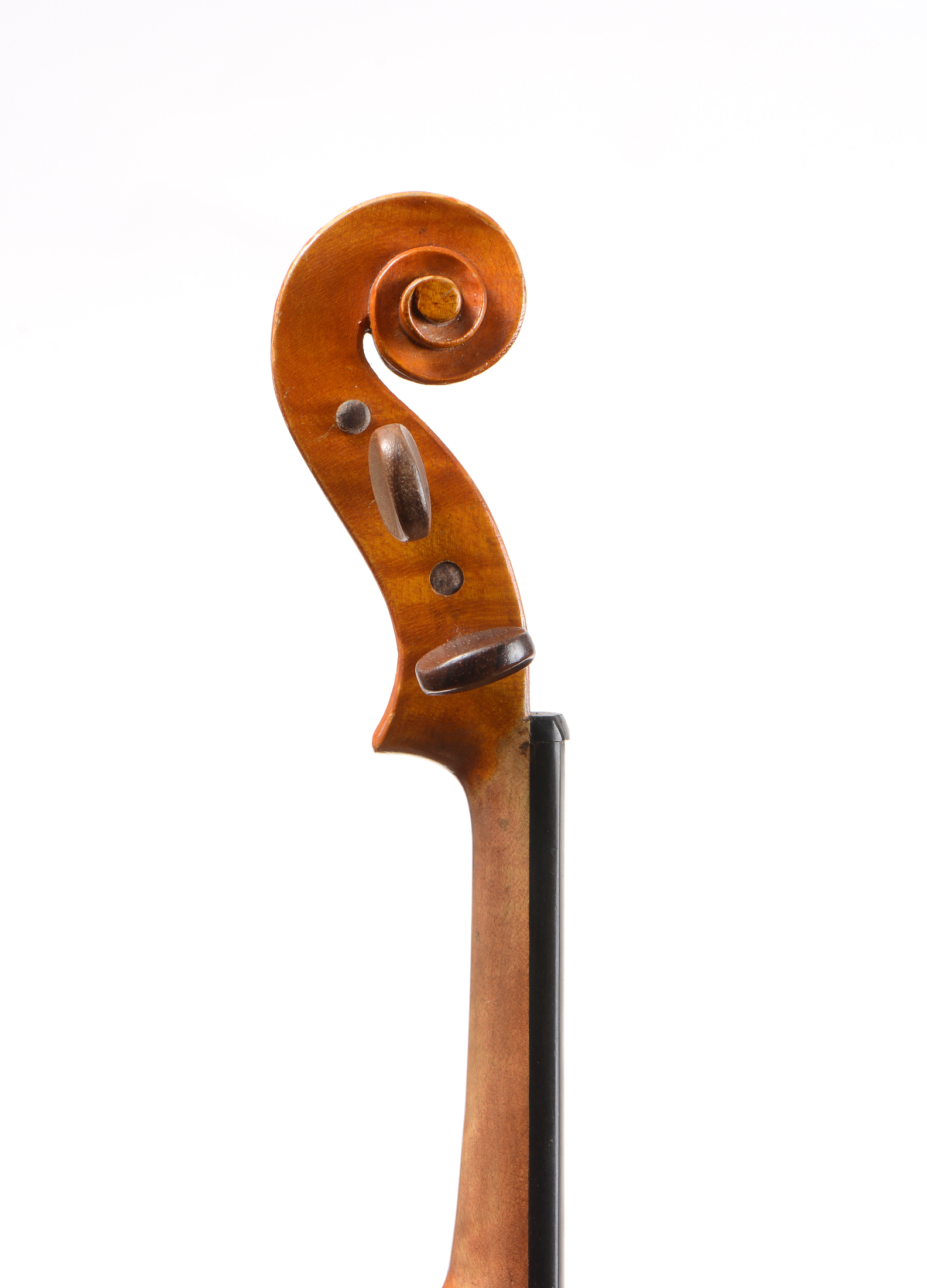 portant une étiquette de Breton "Breveté de SMG...". et une marque au talon du manche. Joint du fond à revoir. Usures. Vernis doré. Traces de vers sur le flanc du haut à la table. 359 mm.