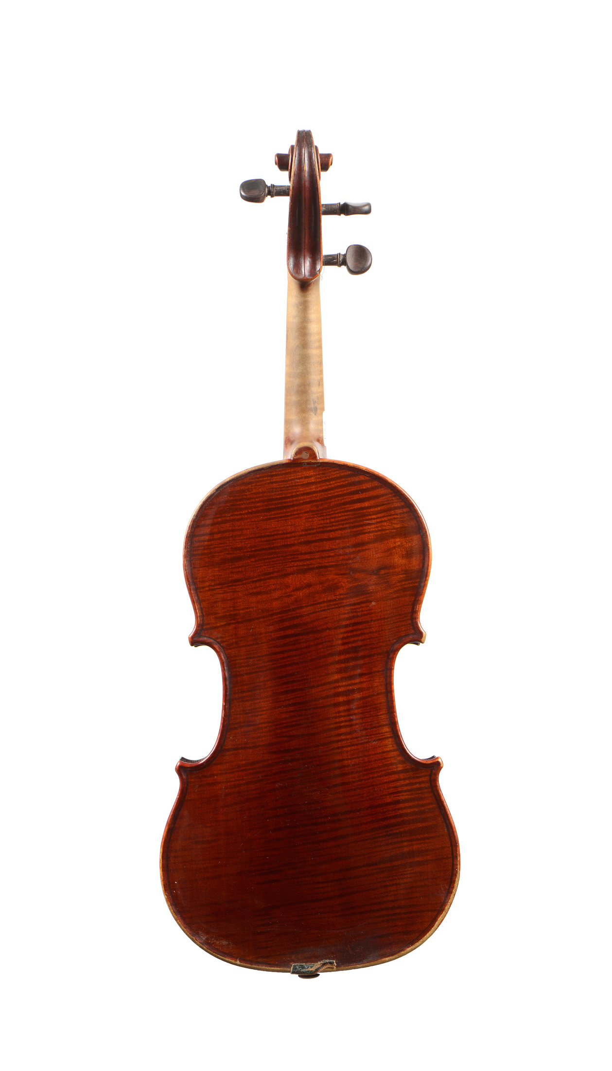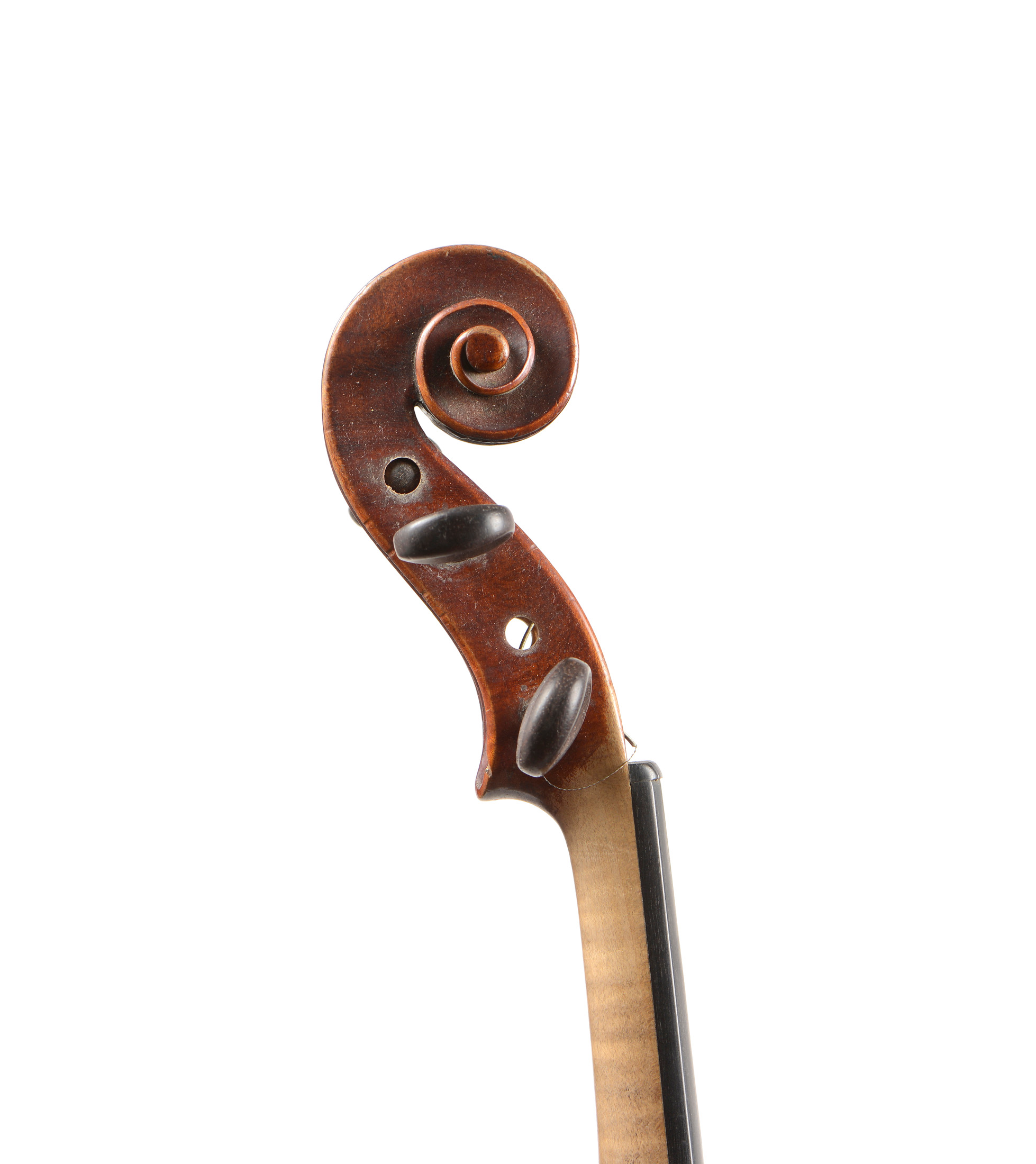 dont il porte la marque au fer "A la ville de Padoue". Fond d'une pièce. Vernis brun sur fond rouge. Diverses casssures réparées sur la table, dont une cassure d'âme. 363 mm. Avec Archet.