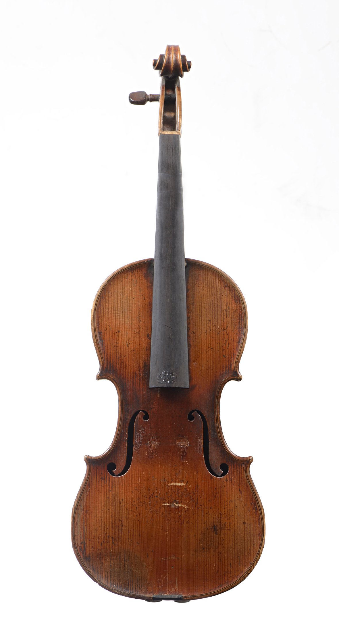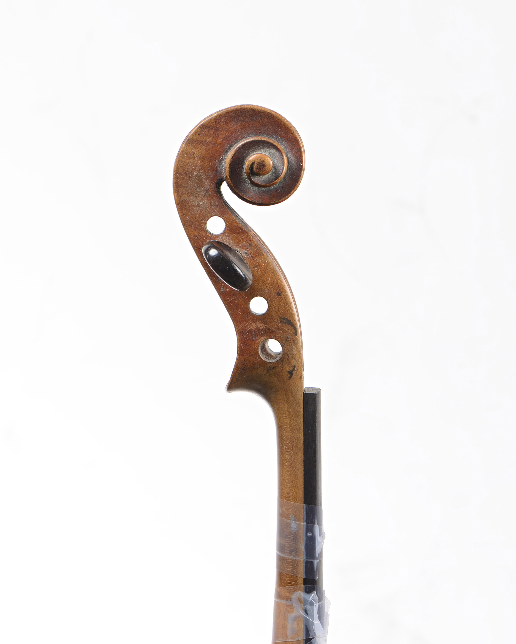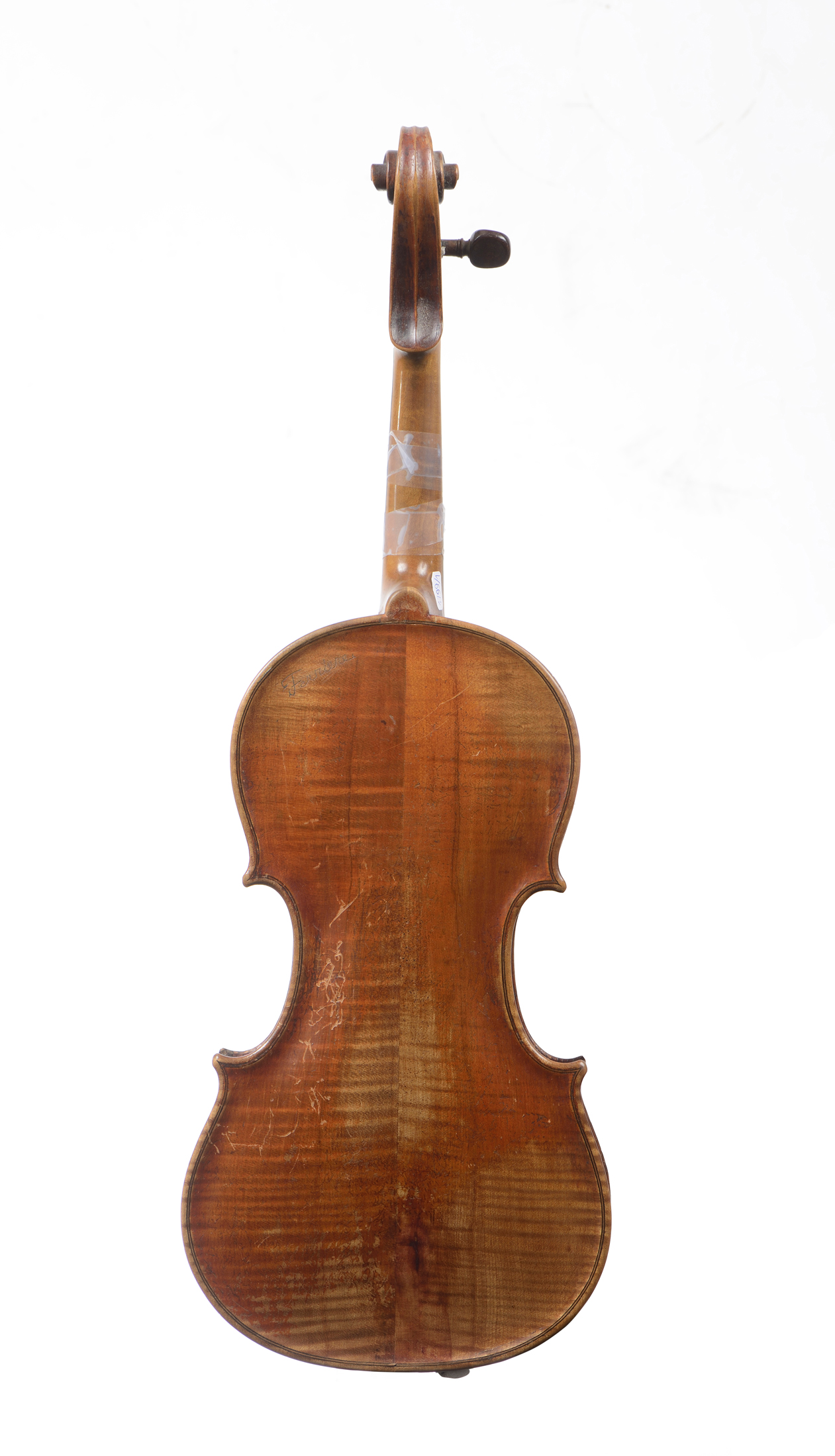 portant une étiquette Amati. Probablement fait chez Laberte. Fond d'une pièce. Usures au fond. Cassure de table. 356 mm.